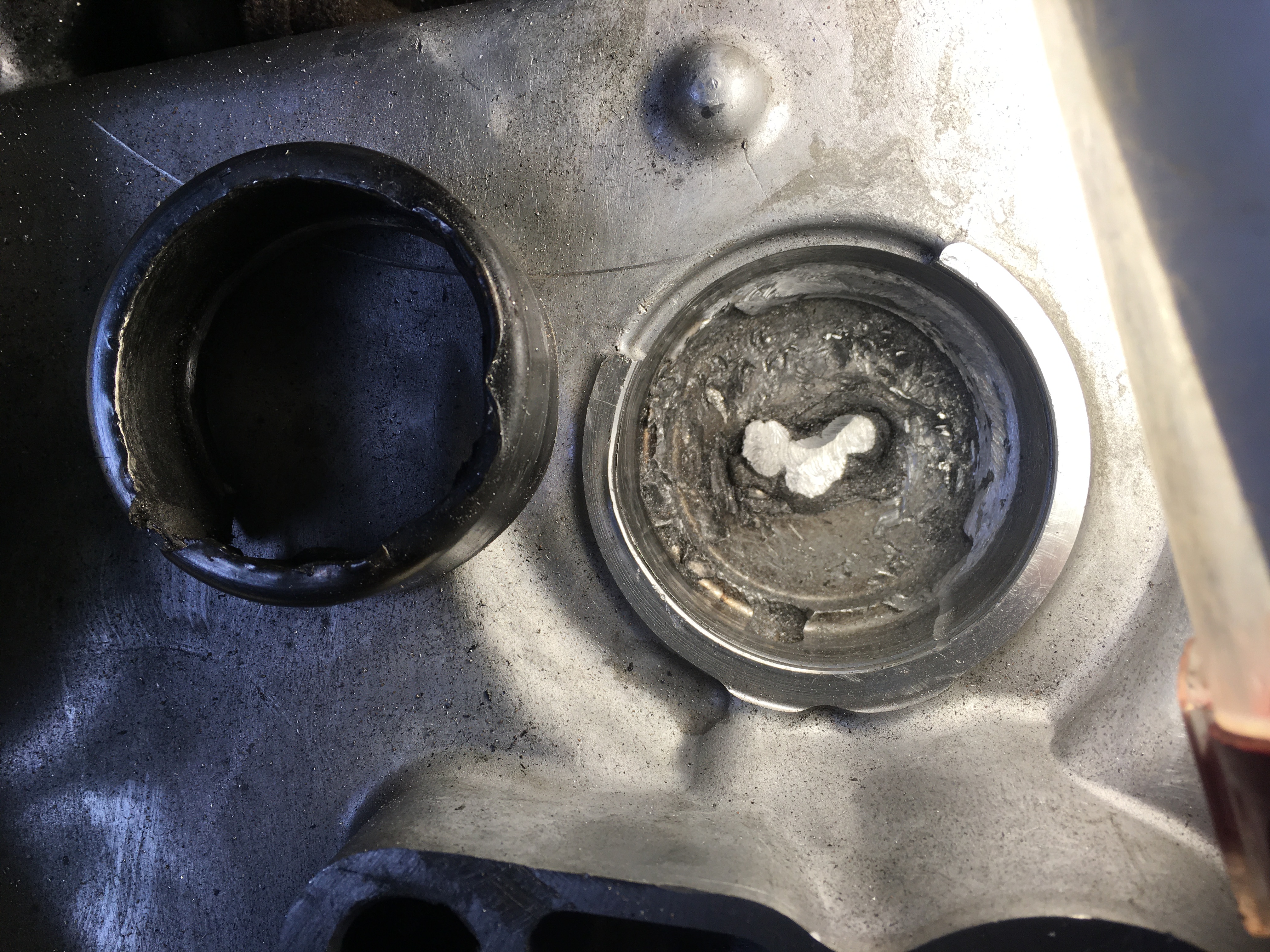Compression check found all the cylinders in good shape - over 180 psi. Oil and filter check found a fine sheen of metal in the oil and bits of metal in the filter. Engine of course had to come out. Tear down uncovered all the bearings in good shape. Further tear down located the source of the metal. The pistons in cylinders 3 and 4 both had cracks in the skirts and little bits of metal were breaking off the bottom edge of the skirts. By my records these had about 85 hours of track day use. They are Speedpro hyperteuctic. The rings were just seating into the bores. I went to get another set and they are discontinued - found a new set on eBay.