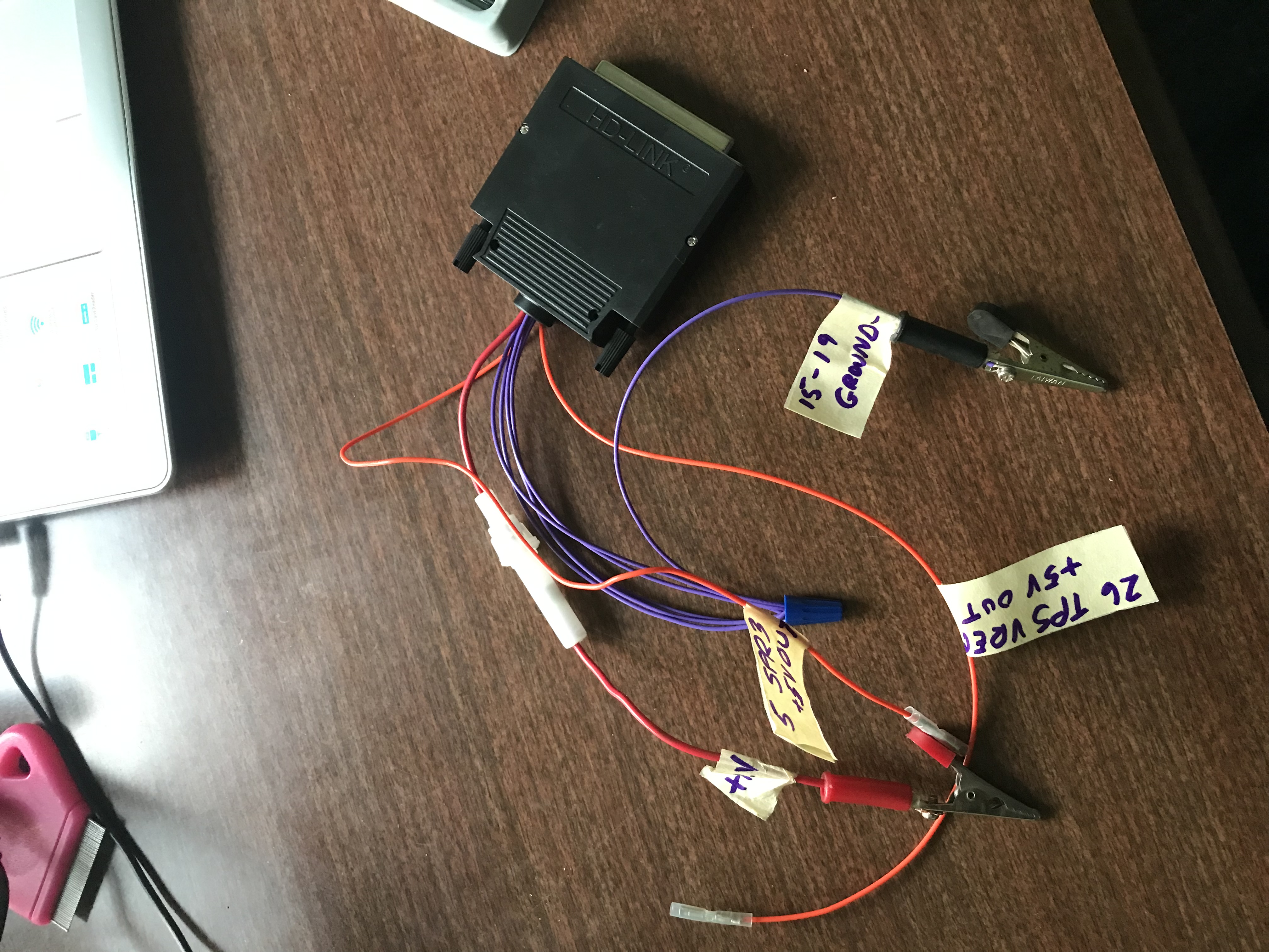 So on to the next problem - why was the DIS not getting the signal from the ECU. Well there are two wires going to the DIS from the Megasquirt. One provides instruction on when to fire, the second is a "signal" wire that tells the DIS to use the instructions from the ECU. The signal on that wire is +5v DC, but the wire is only sending +4v DC. When I send +5v DC to the DIS it works just fine off the ECU instruction wire - which I can see with the timing light. Kurt had a device where I could specify what DC voltage I wanted and when I hooked it up to the signal wire the timing changed.