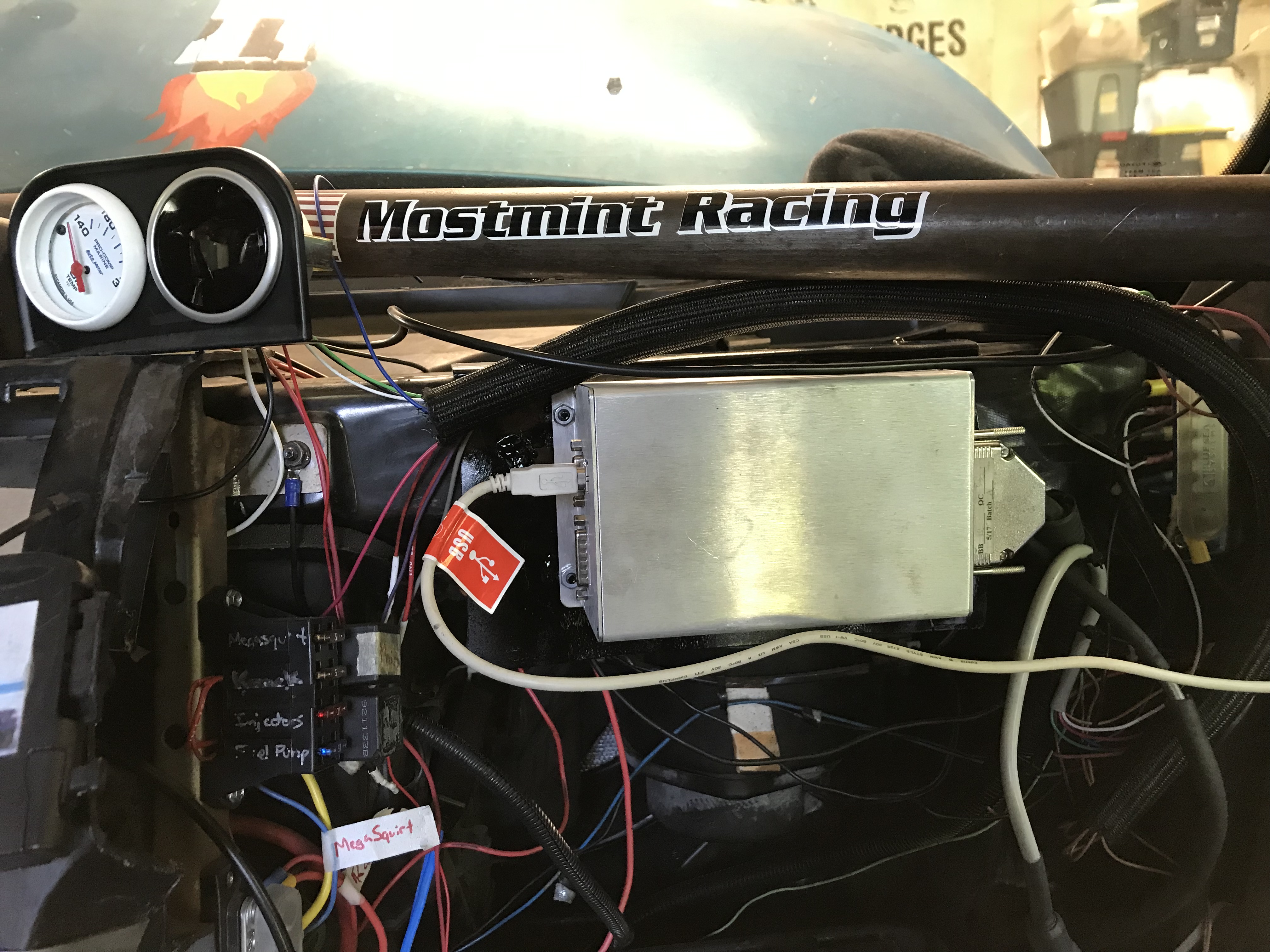 Removed the stock engine wiring harness. We've done 68 hours of racing with the Megasquirt it has proven itself. We'll get a spare Megasuirt set up for the next race