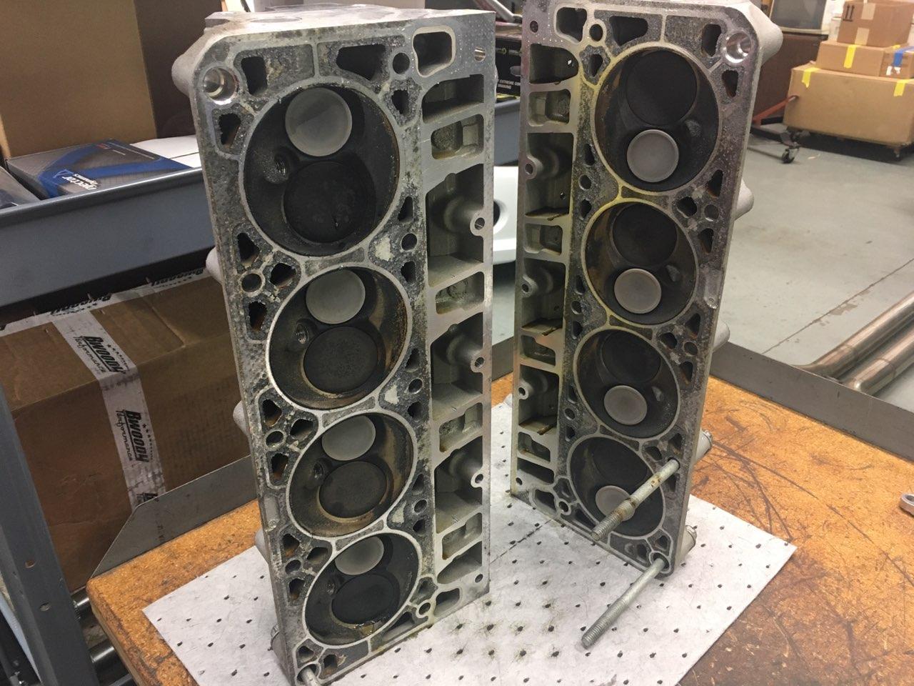 The heads are back on. Dusty is having some problems fittings the headers though. Trying to fit them is tomorrow's project for him.
