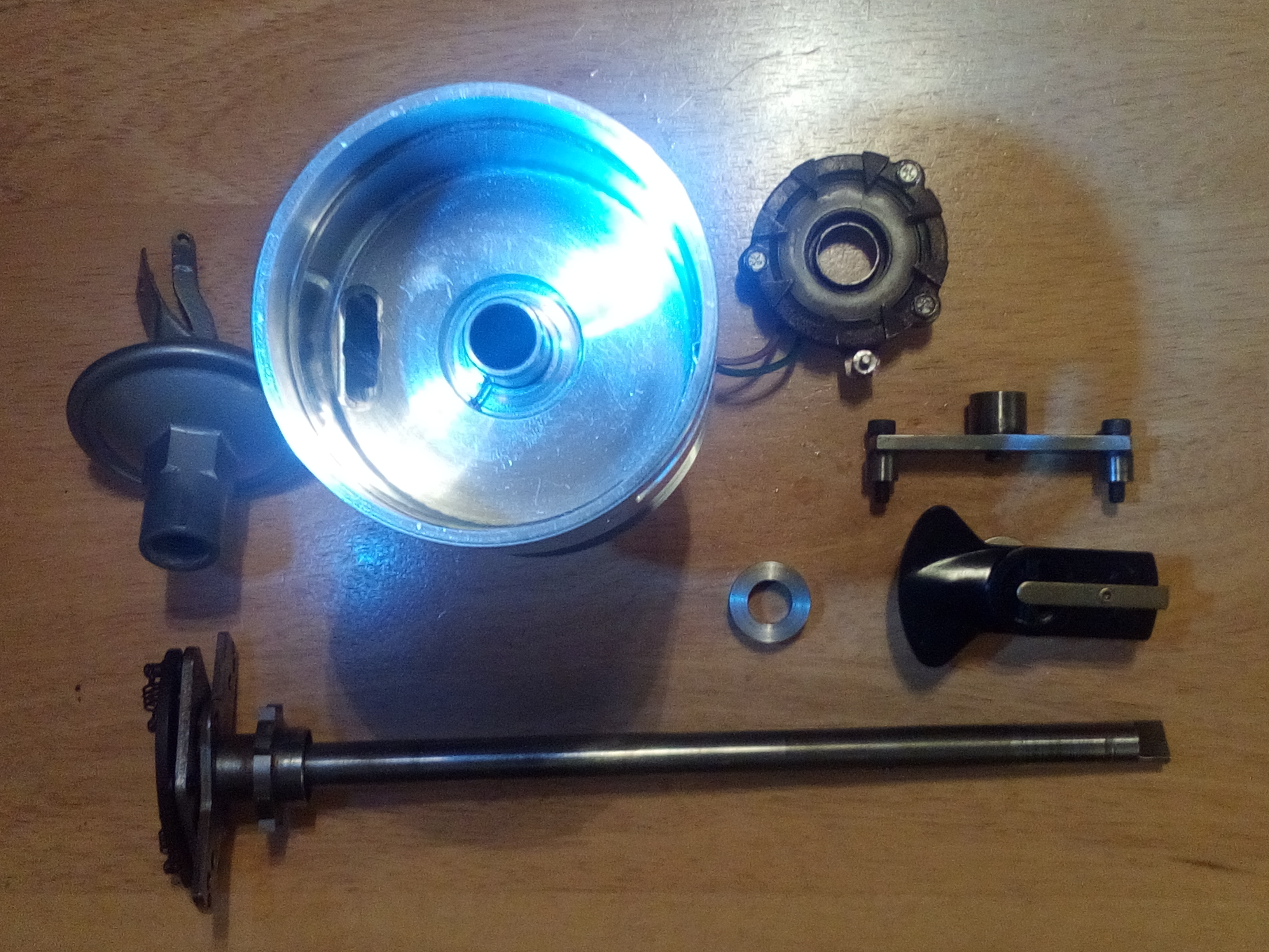 Still a ways from that though. I still need to make a collar and pin it on the shaft. Make some sort of pin for the vac advance. Fab up some sort of rotor. Lastly I need to add the cap locator tabs - but want to get it fired up on the dizzy machine first so I can phase the rotor to the cap. Oh yeah -I need to decide how to run the wires too.