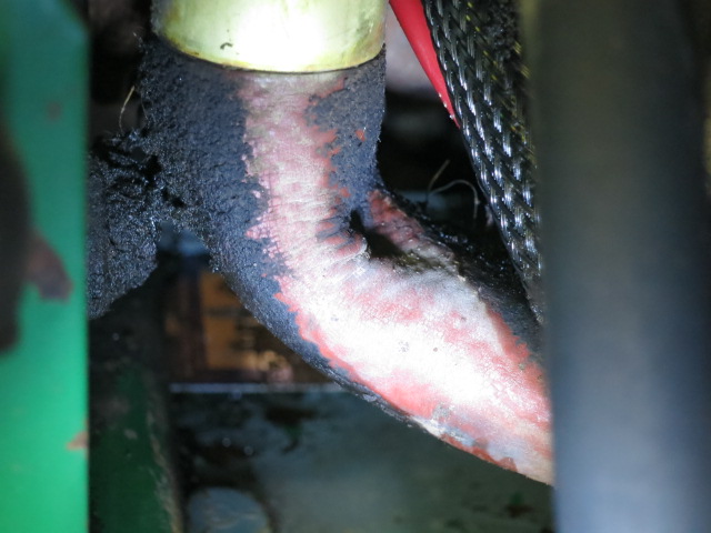 After removing much of the crud, I can see that the main high pressure hoses on the output of the pump are looking bad. The outsides are dry and checked and I can see a bulge on one of them near the fitting. I assume it's condition is due to the heat of the engine. I think it would be best to replace them after 30 years of service. I can get one of them from Messicks in Carlisle for $40 plus shipping. This hose is described as 5/8 x 26-1/4. It has brass screw-on fittings on each end. Is this a generic hydraulic hose that I can go out and buy locally or should I try to stay with the Steiner hose?