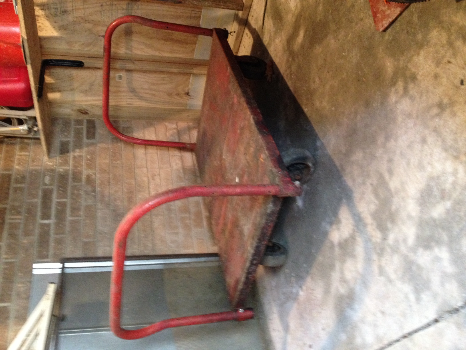 WXO has an old steel industrial cart that will make a good base for the run stand. I have a SBC engine stand that should fit nicely on the cart. The cart has high handles on each end that should serve well as structure for the radiator mount and, on the opposite end, a control panel. WXO took the oil pan, intake and carb home to clean up. Oil pan is dented on the bottom so will need a little massaging before paint. I'll power wash the block and maybe clean up the distributor and starter.