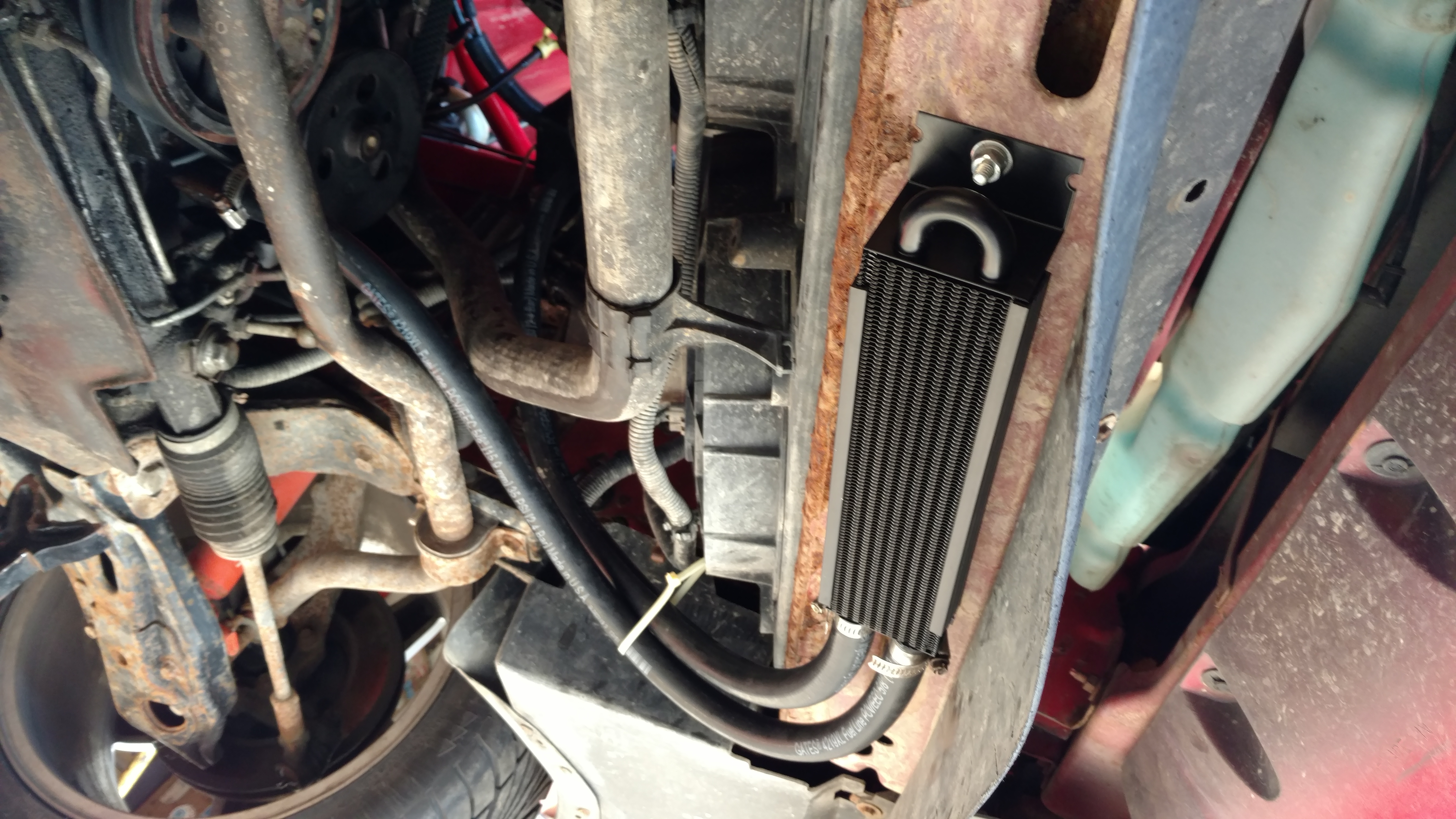 With another track day looming, we had a few things to do. The most important was the power steering cooler and synthetic fluid. We also rotated the tires, checked the brakes and fluids, installed the new non-leaking gas cap, and pulled out the rear seat and seatbelts. Good thing too as there was a stinky mouse nest onder the driver's side rear seat.