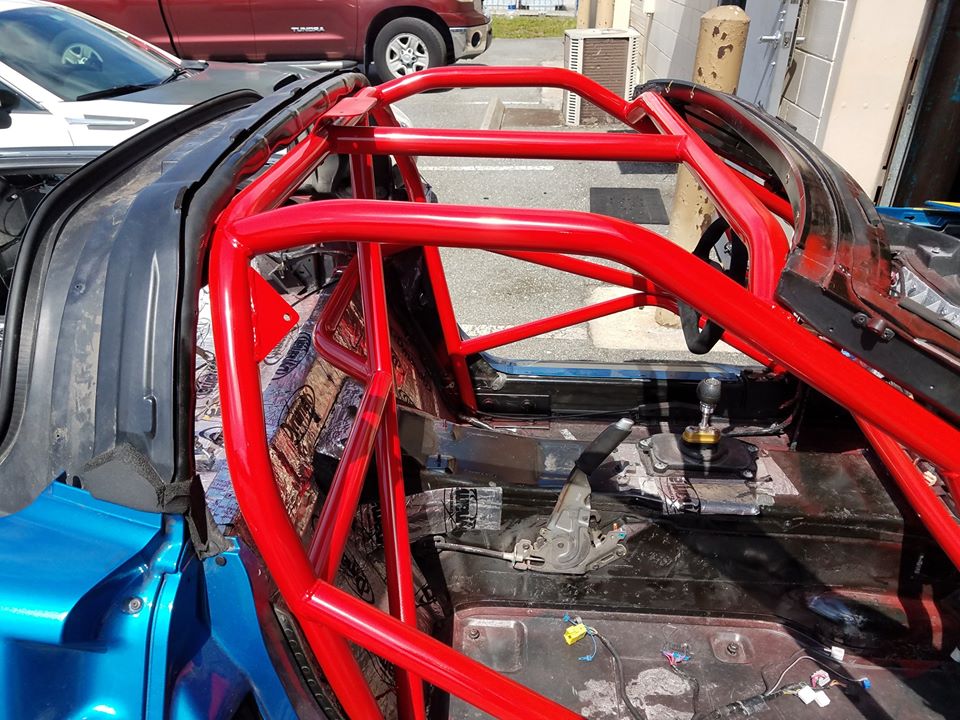 Put the hoop under the factory rollover protection – keep it within 1/4” along the top and attach the sides with gusset plates.