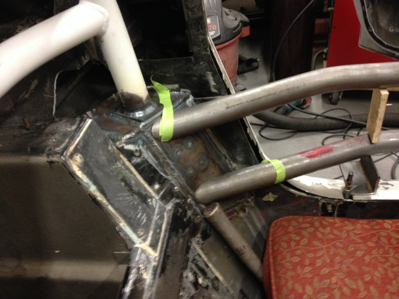 Front legs to mount to subframe at top of rocker panel/kick plate area. Will have to cut through the fiberglass to reach the subframe