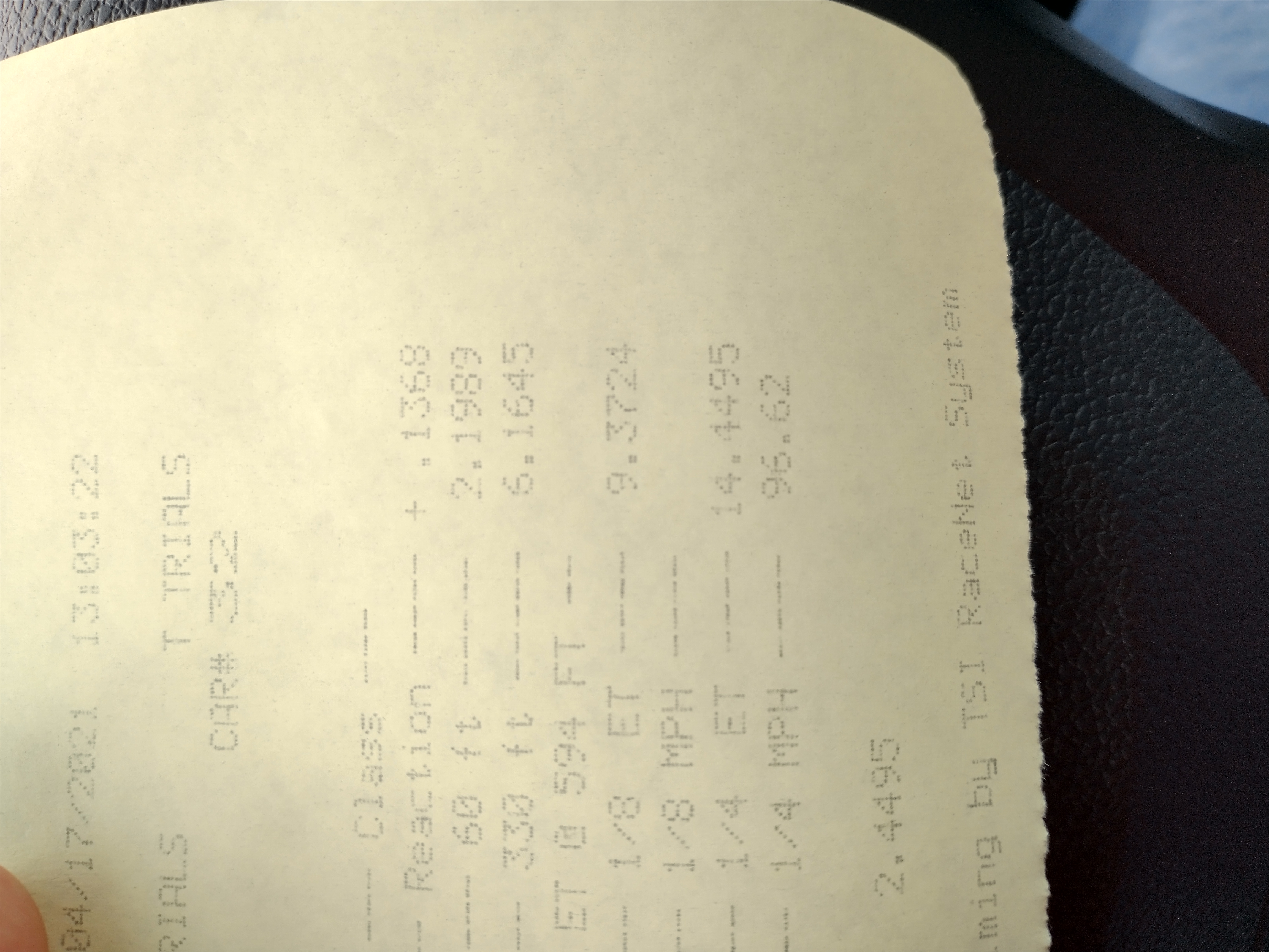 Time run - low fuel, no prep - 0.3081 reaction, 2.1760 60', 14.7774 @ 92.93