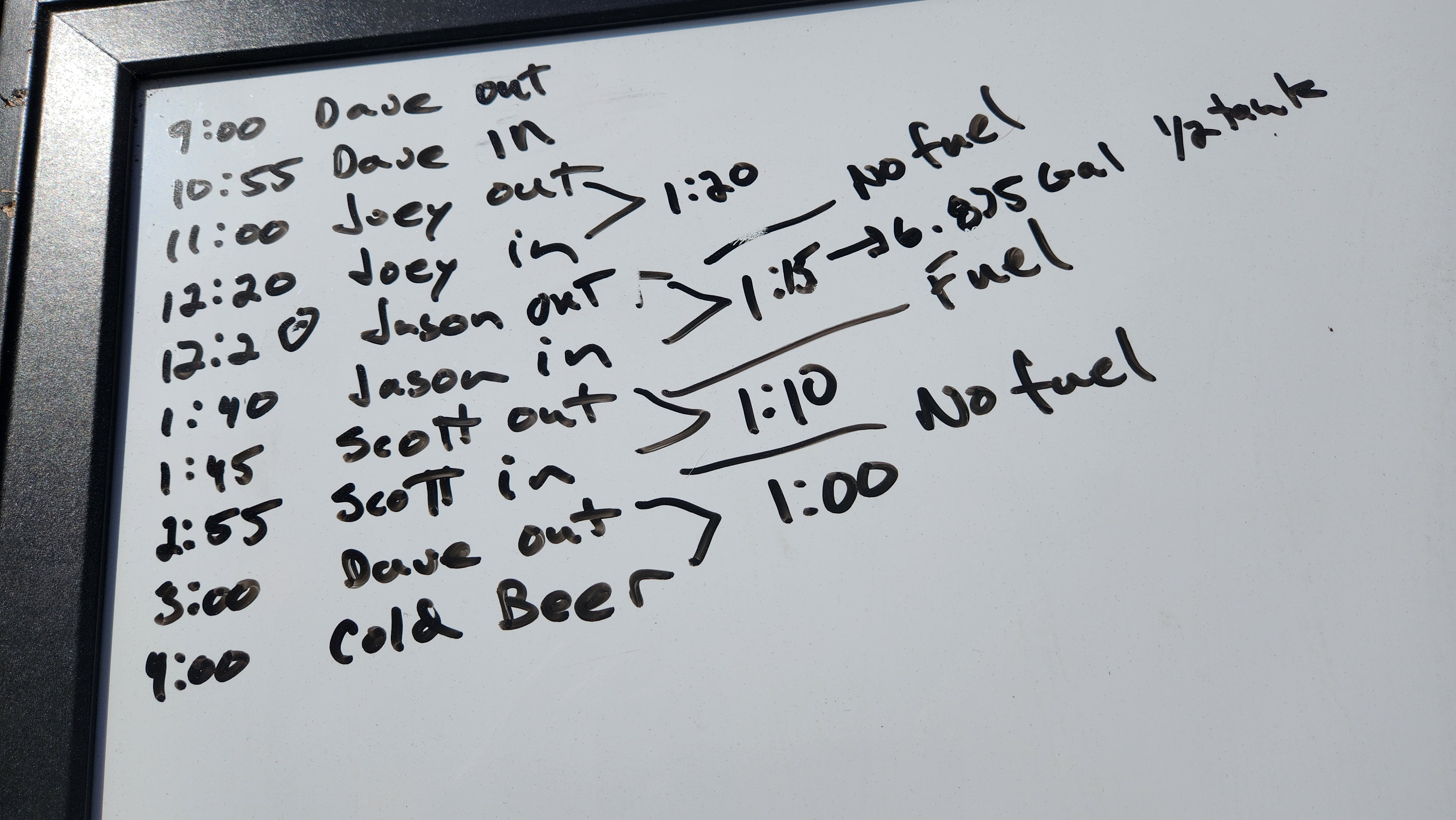 The weather forecast for Saturday went from fantastic a few days out, to sketchy the day before, to full on rain by late in the race that caused a red flag and eventual calling the event without going back on track at ~ 6 hour mark. I was to go last that day, so I got in the car at 3pm, made one lap under FCY, and came right back in the pits. The rear hatch was so fogged up, I couldn't see a thing. While I was in the pits, they red flagged it, and we never got back out. While I was bummed to lose my stint, I had zero interest in trying to race in those conditions. Race director made the correct call, IMO.