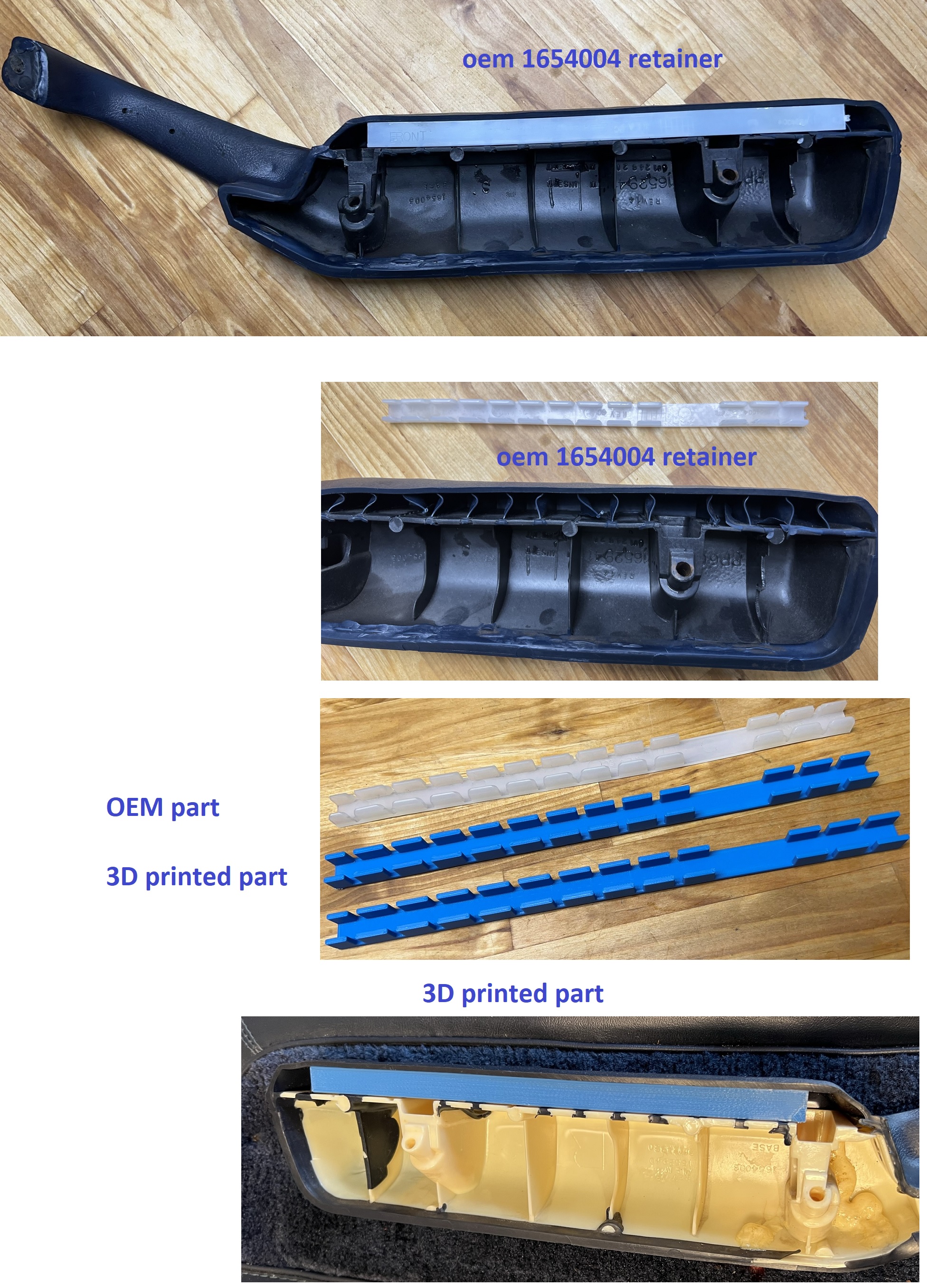 As you may know Alex and I are working on his corvette. In one of the 4 sets of door handles that we have, ONE of them had a GM retainer that virtually NO ONE on the corvette forums has seen before. Attached is screen shot of the corvette manual showing the part number. There are several pictures of the OEM part and the 3D printed part that I measured, drew in CAD and printed on my 3D printer. To me, it makes the edge between the door pull and the door panel so much straighter and crisper. The OEM one is white and the 3D one blue obviously.