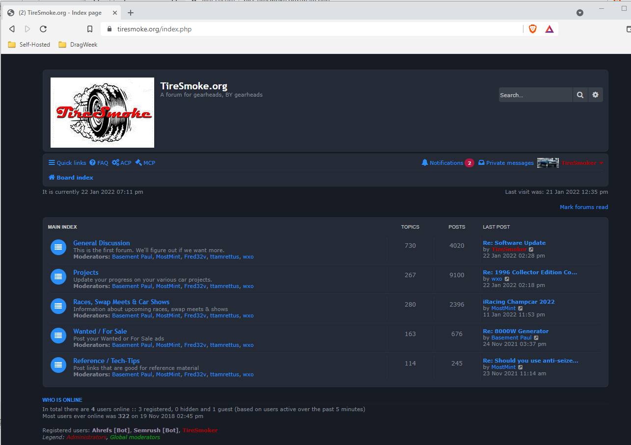 TireSmoker wrote: Tue Nov 13, 2018 12:25 am Not really a software update, but Tiresmoke has been moved to new hardware! For the past 3 years, It's been running on a Linux virtual machine using Oracle VirtualBox on an old Windows 7 box that is probably 11 years old. (Dell Inspiron 531) Sometime in the past year, I bought a Dell Optiplex 580 from Penske for $25. I bought this box because it has an AM2 CPU socket which would accept the quad-core 3.2GHz processor I salvaged from another PC that died. The stock processor was a dual-core 2.x GHz something. I added an 8GB ram kit (12GB total) and a 256GB SSD. So we're running on a souped-up hotrod!