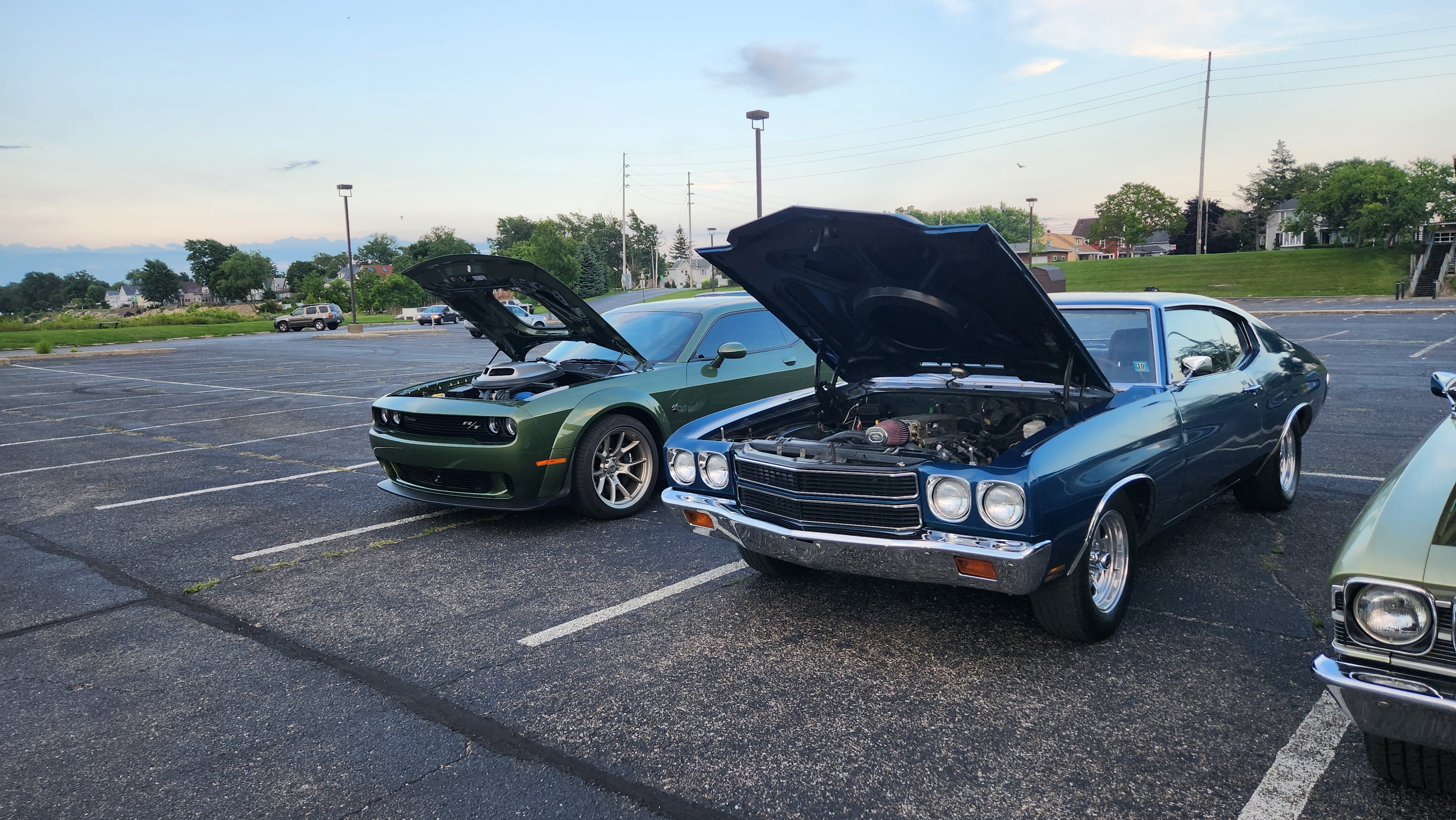 I did another 140 miles in the car yesterday. I headed out to Tony's in Avon, and then we continued on to Lorain to meet up with another member from chevelles.com. It's been a while since I've really driven it on the freeway and forgot just how good it is out there. I can run in the left lane with everyone at 2500rpm. I had all 4 windows down on the way out -- it's amazing how much better the older cars are with the windows down compared to new cars. I've noticed that in the '63 too. Its super easy to have a conversation with the top down.