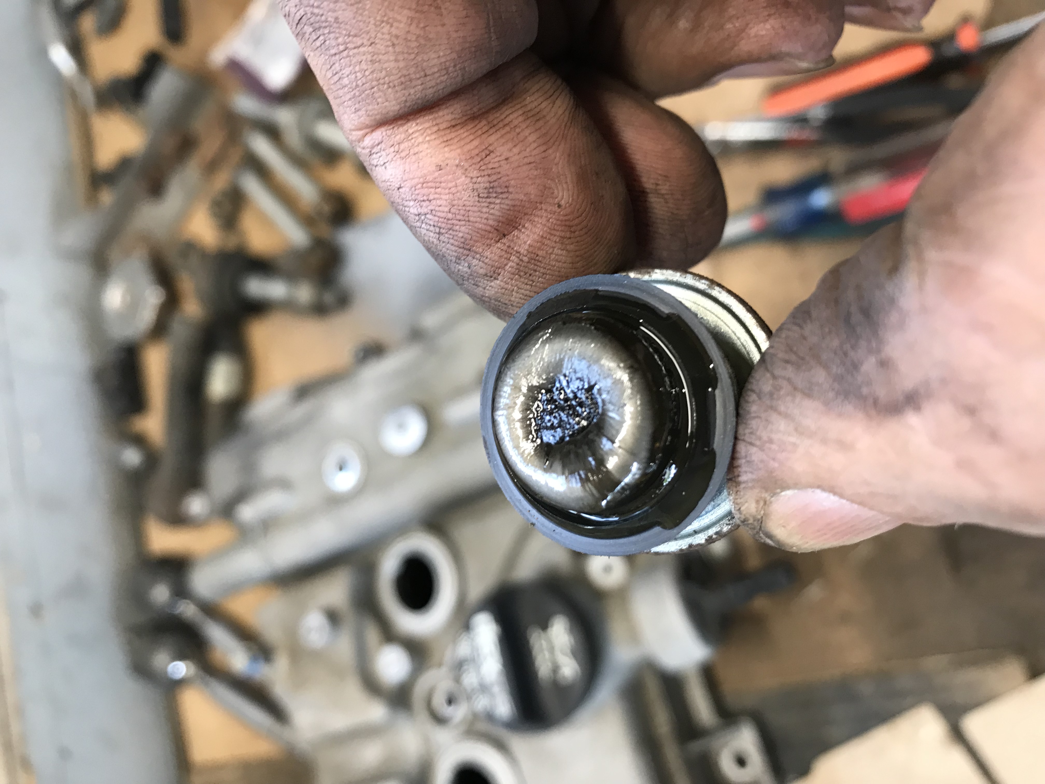 Differential is out - literally just unbolt the halfshafts and six bolts. I wasted some time because the rubber u-joint had metal sleeves that were slightly pressed in and I didn't understand this. After reviewing some videos I applied a few hammer taps and they came out. The thing is coated with fluid - kinda disappointed I didn't see when I was inspecting this car to buy it though the sounds on test drive saved me. It's just not a problem I was expecting on a Cadillac built in this century. Cam cover is off. Online research tells me that somewhere around 100k they start leaking. Mine is leaking pretty much all the way around the top but it really looks like the worst offender is the vacuum pump gasket. The hardest part of this job is reaching the bolts that hold the vacuum pump which is driven off the exhaust cam since the bolts face the firewall. Another oddity is the cooling line that runs over the cam cover and connect with the block through a hole in the cam cover. Had to drain some water out of the block so that wouldn't flow into the crankcase. Signs of a 10 year old car were prevalent: The gasket on the exhaust side got real crisp, under the hood I found some of the vacuum lines have already been replaced, and the suspect Y fitting in the cooling system has already be replaced, plastic tubes on the engine for PCV are very brittle so there is some work there, and a heat shield/sound deadener at the back of the engine is missing. Cam cover gaskets are on order. I pulled the plugs out. They are a bit black but this is likely due to the last half dozen times I moved it in and out of the garage without warming it up at all. They were AC 41-125 iridium plugs. The car is a bit sluggish when you first engage the throttle. On the assumption these are the original plugs I ordered another set. The rear tires had way too much negative camber and the LR was toed out quite a bit. I looked under there and played with the adjustments a bit - however one of the offset washers for the lower control arm on driver side was stripped so it wasn't moving with the bolt. I'll grab one from the car at pull a part. When the car is back on the ground I'll get to taking measurements and fine tuning it. This car has the same basic 5 link suspension configuration as the Challenger. New tires are on order. I was debating what combo of tires to get (summer/winter/racing) until I came across Michelin X-Ice tires for over half off at Tire Rack. If I'm doing dirt drags I can't see how snow tires can hurt, and with AWD I'm going to try them on the paved drag strip also. They are new old stock and I only drive like 5k miles per year. In time maybe I'll get another set of rims and summer tires.