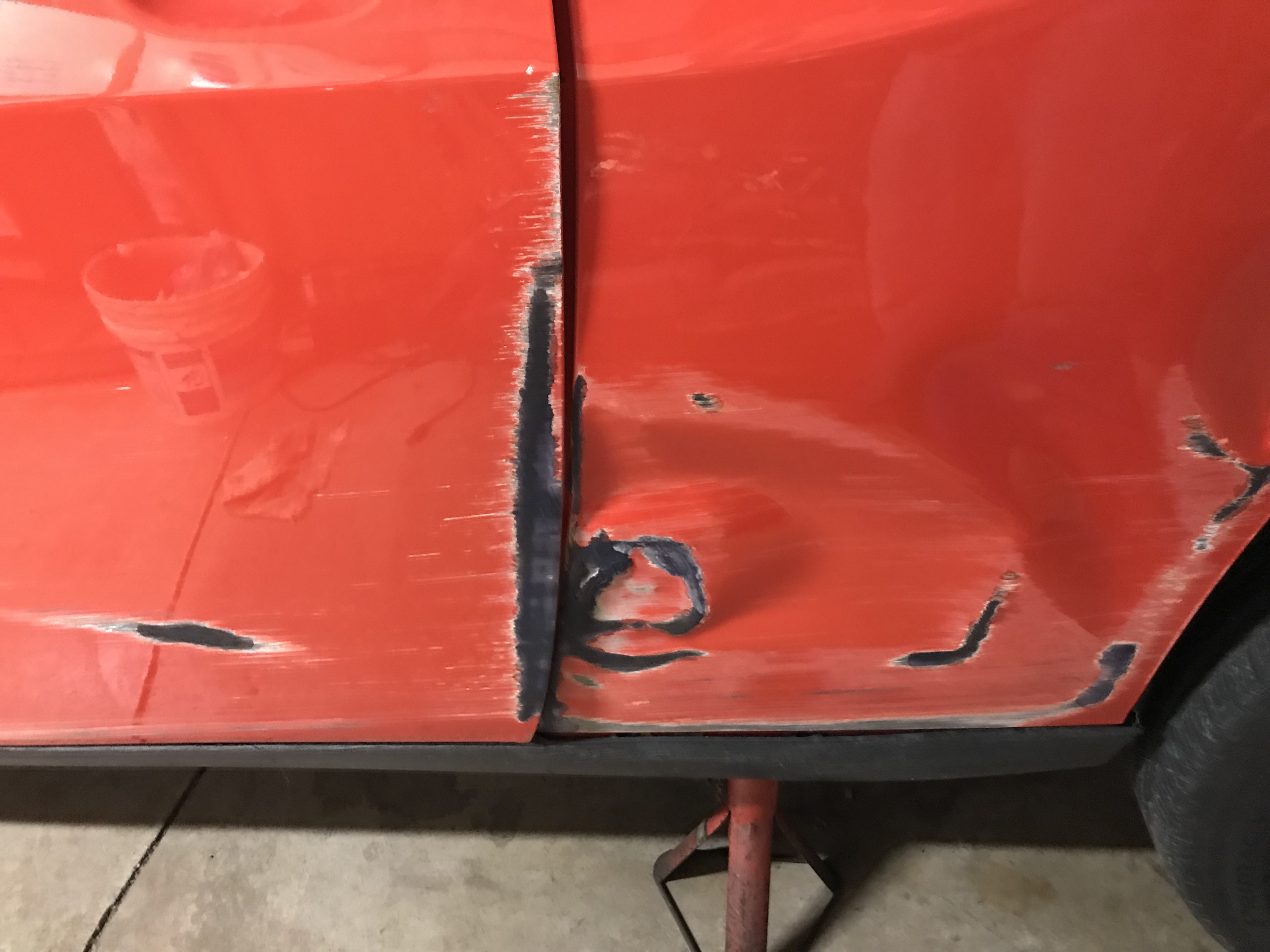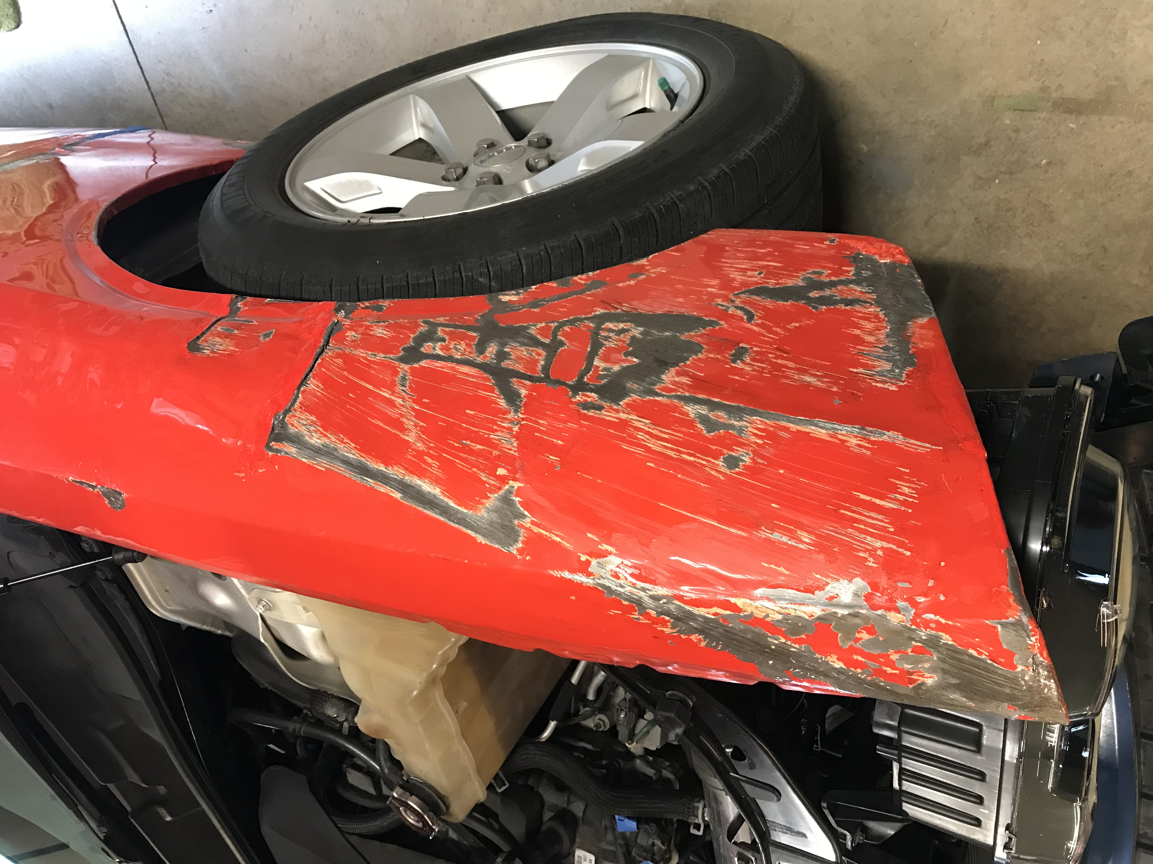 • Removed LF fender, did some work to improve adhesion for the patch panels, put paint on some of the non-visible areas.