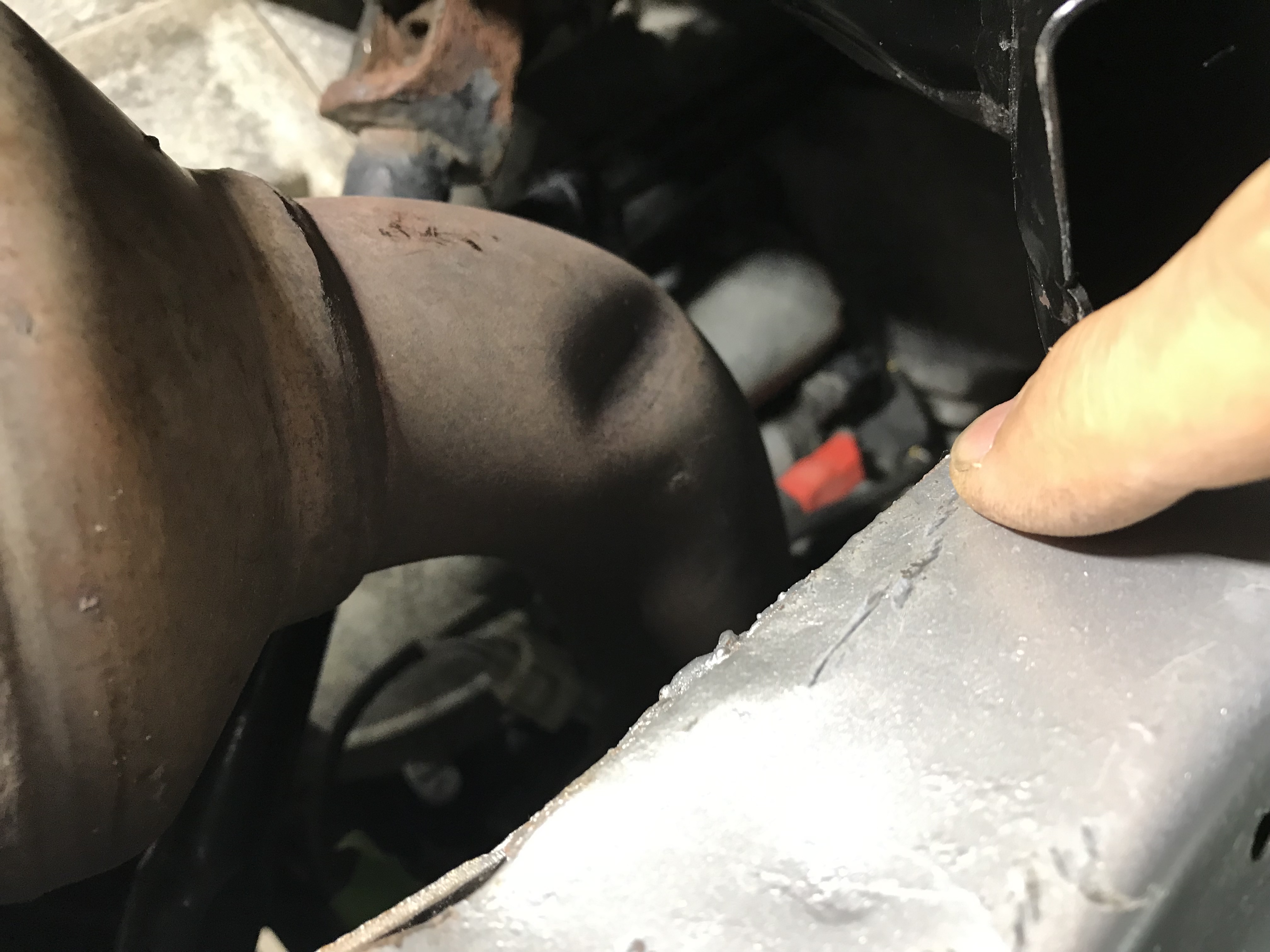 bonus pic – crash inflicted dent in the exhaust from the frame: