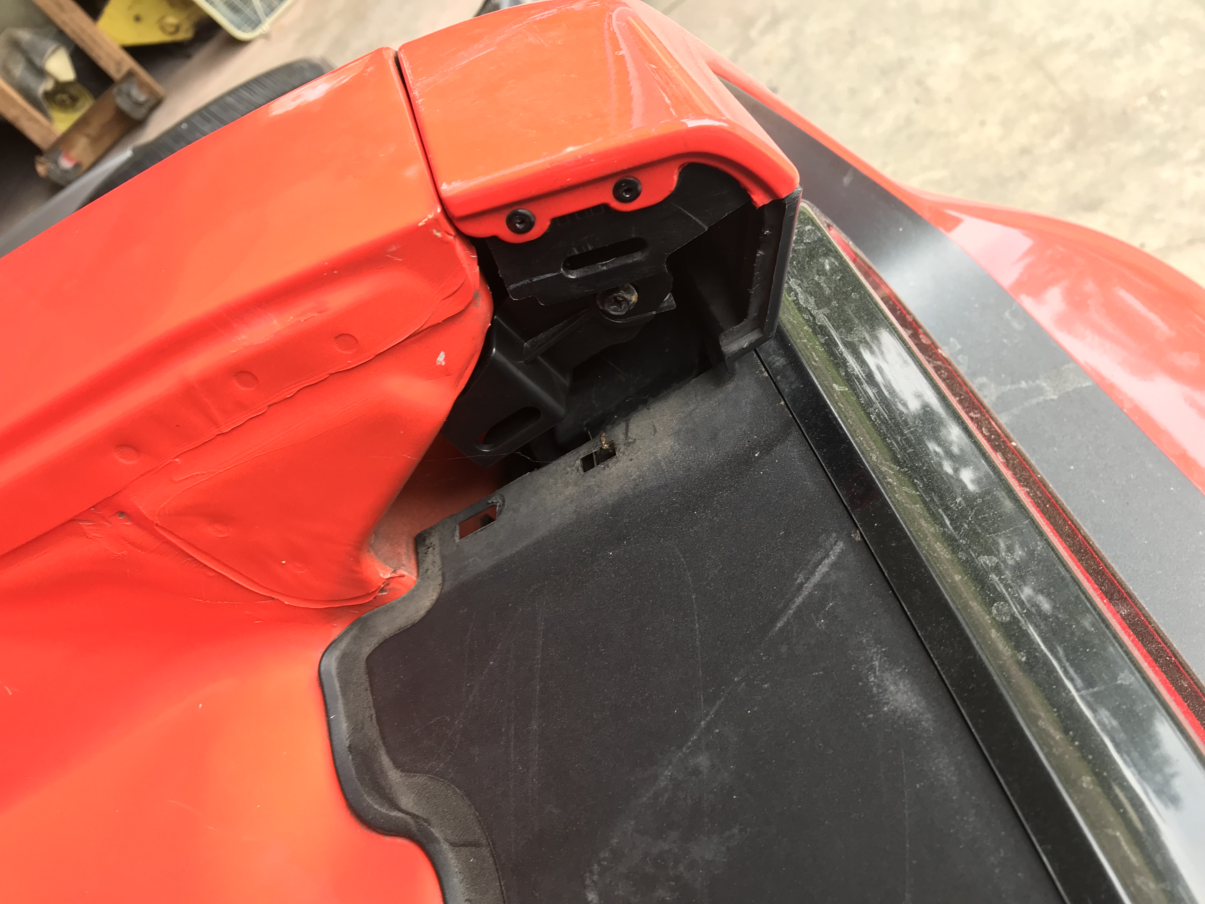 • Both sides at the front were high – took me a while to figure out the latching mechanism had been bent up in the crash. I could not get it back to original shape but was able to make adjustments to lower the latching mechanism to bring the hood center down.