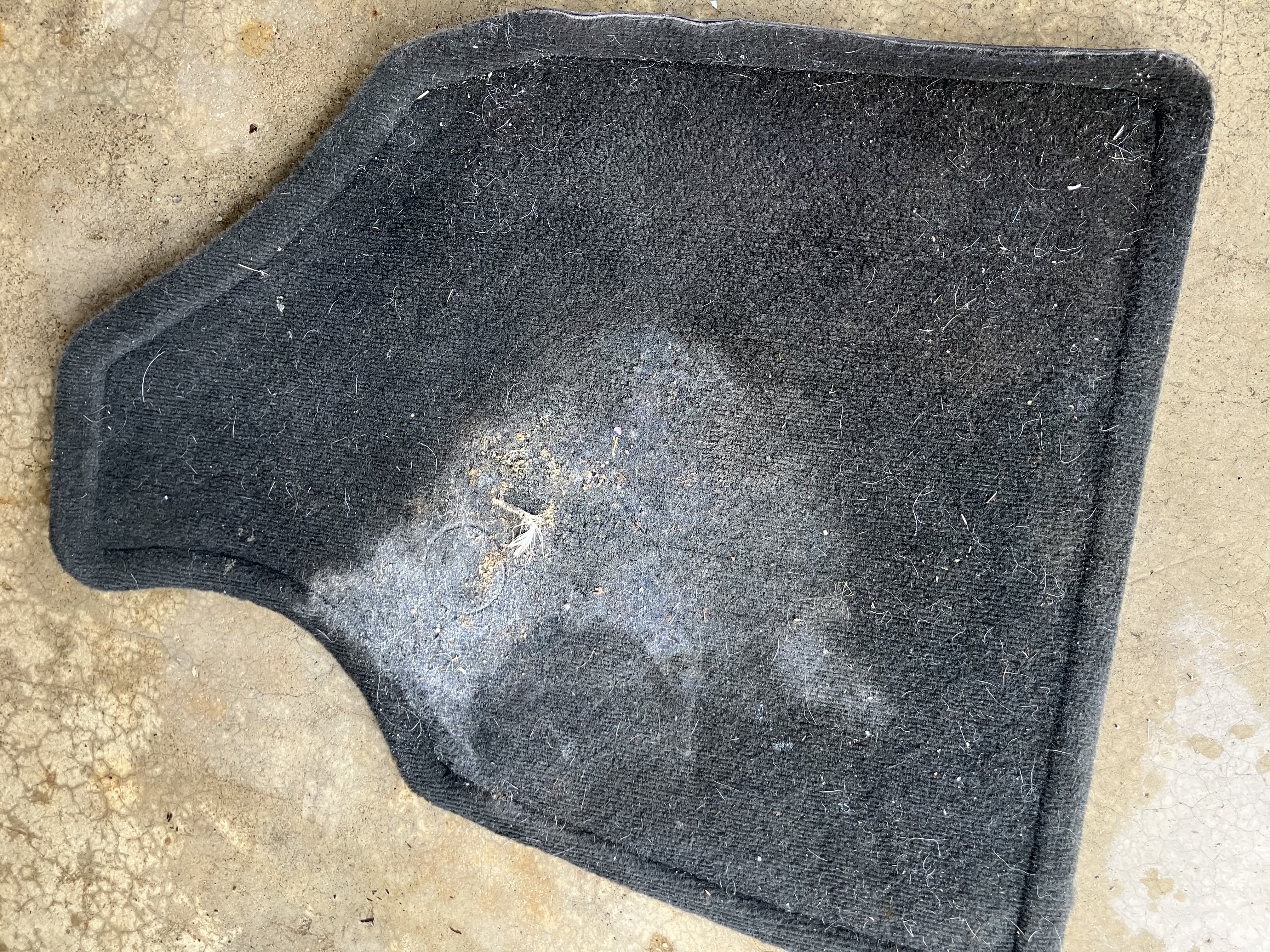 So the first thing I did was clean up the interior some. Nothing fancy, just cleaning up all the misc trash, vacuuming, and washing up the front mats. The passenger mat had some goo on it which turned out to be laundry detergent that took forever to wash out.