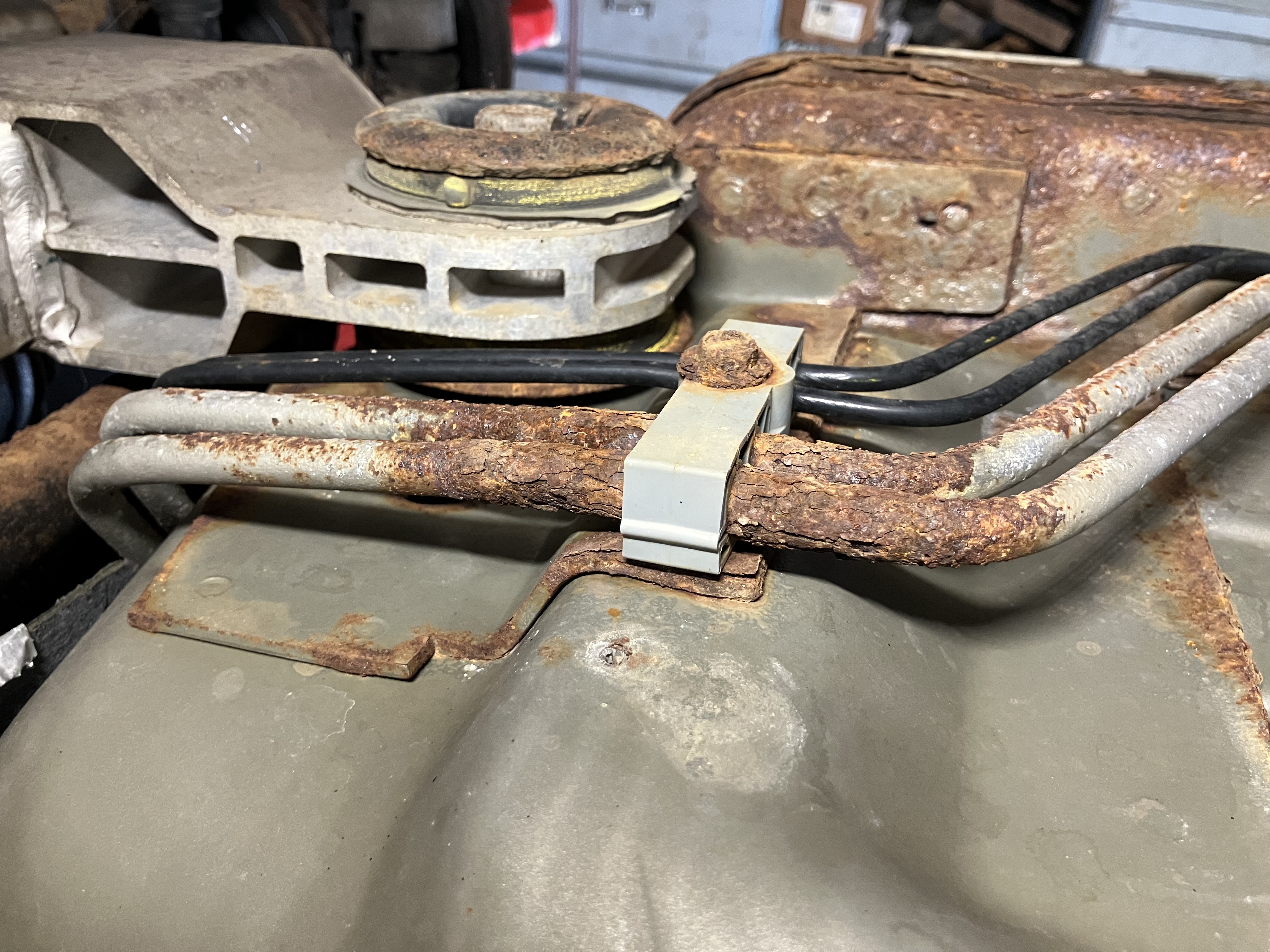 The gas lines were super crusty. Unfortunately when I was removing bolts for the sway bar tie down straps I touched a gas line and immediately smelled gas. Options I am considering include buying a plastic fuel line kit or fetching used fuel lines from a car at pull a part.