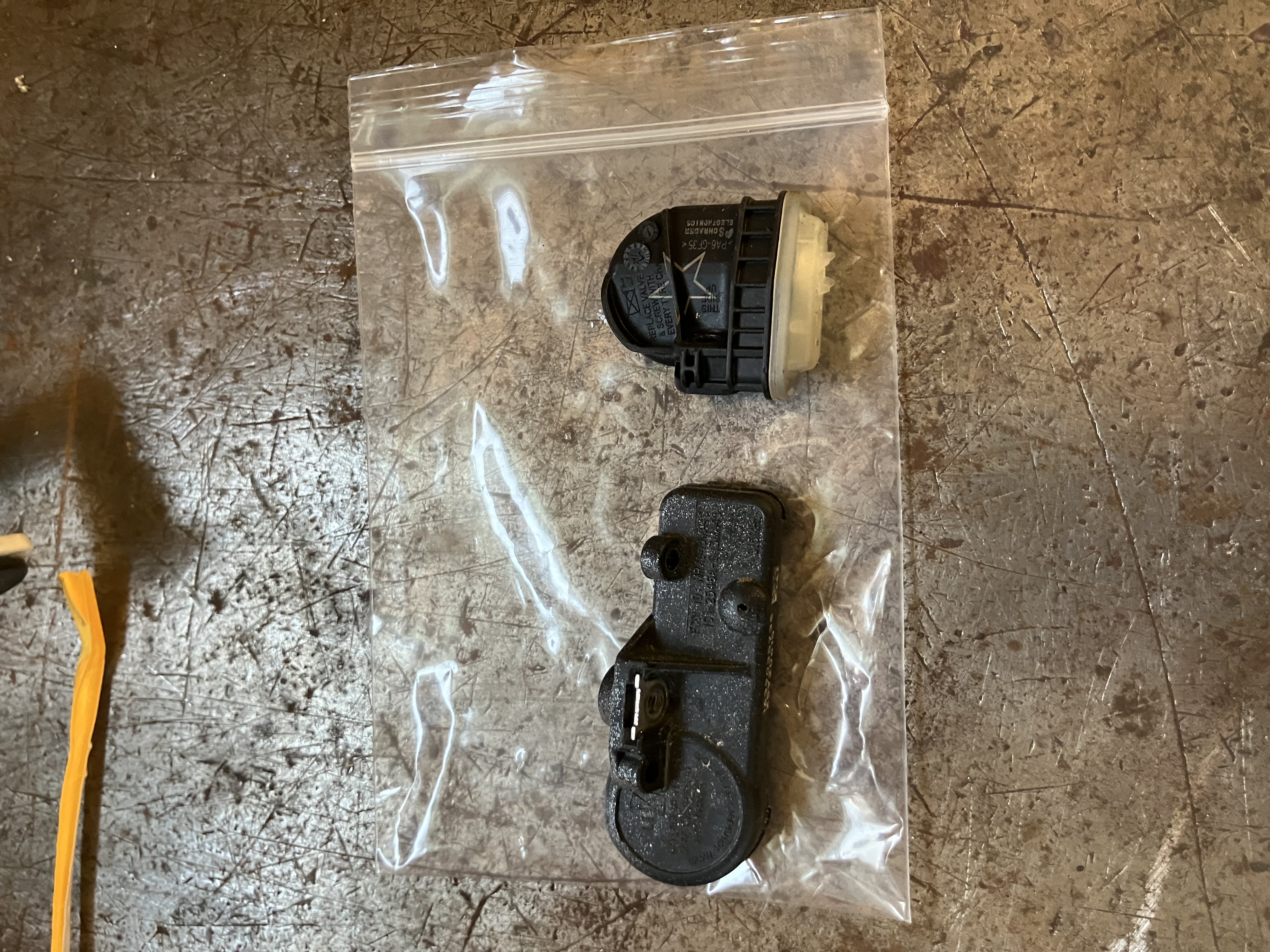 RR TPMS sensor has failed. I made a couple attempts at this but so far have not been able to get the car to recognize either of them. I've ordered another from another supplier, and I also want to try driving it a short distance then attempting the learning sequence - I seem to recall having that problem on other GM cars in the past. There was another tire with a slow leak at the bead which I was able to fix by breaking the bead off the rim an sanding down the bead.