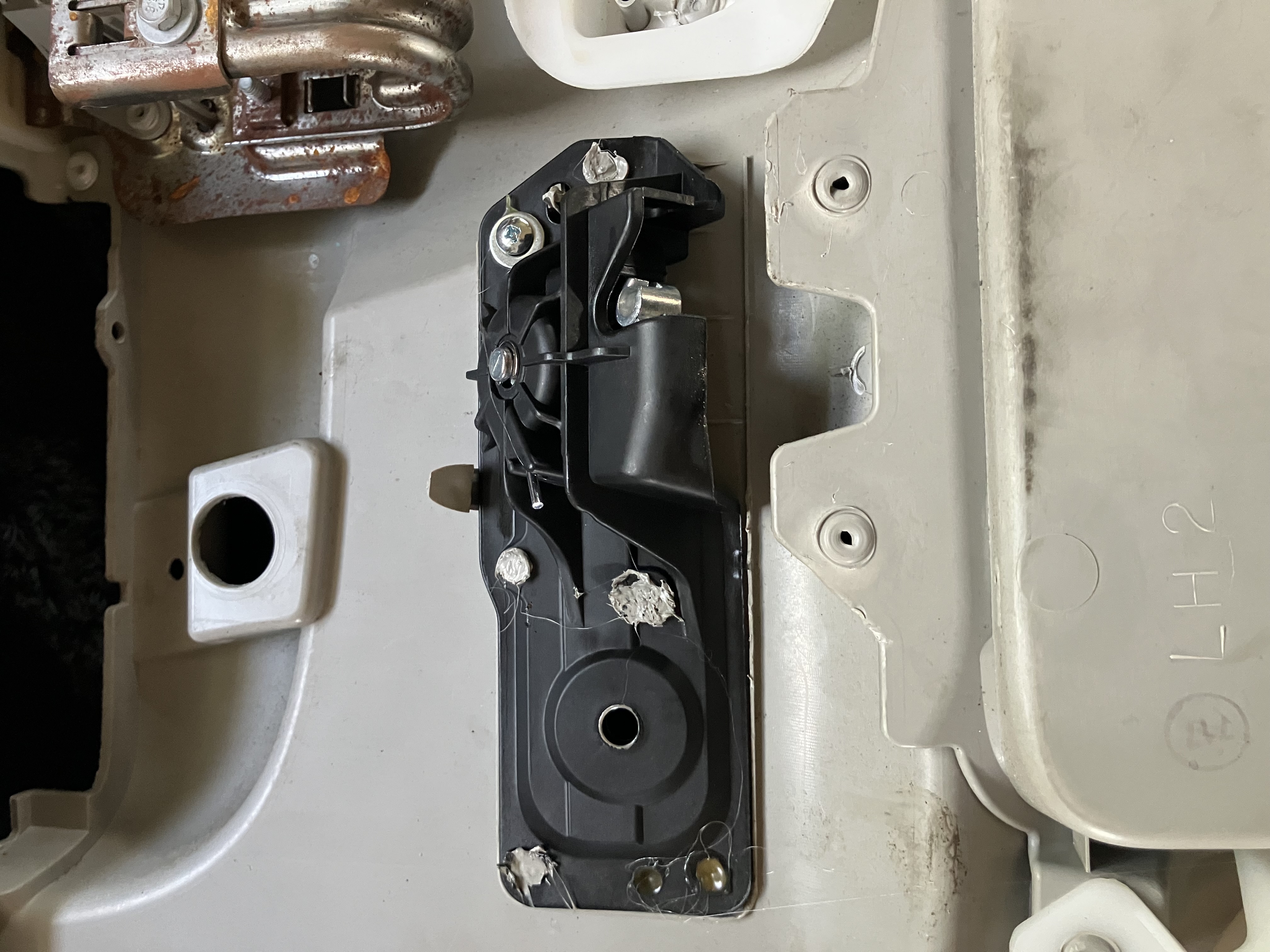 The handle assembly is permanently attached to the inside of the interior door panel. I ordered a replacement. Upon removal of the panel I could see the assembly was already replace once, and shoddily attached. There are plastic pins that retain the assembly when the ends of the pins are melted. I was able to melt the ends of these to get it to hold, used hot glue to replace pins that had been broken out by prior installer.
