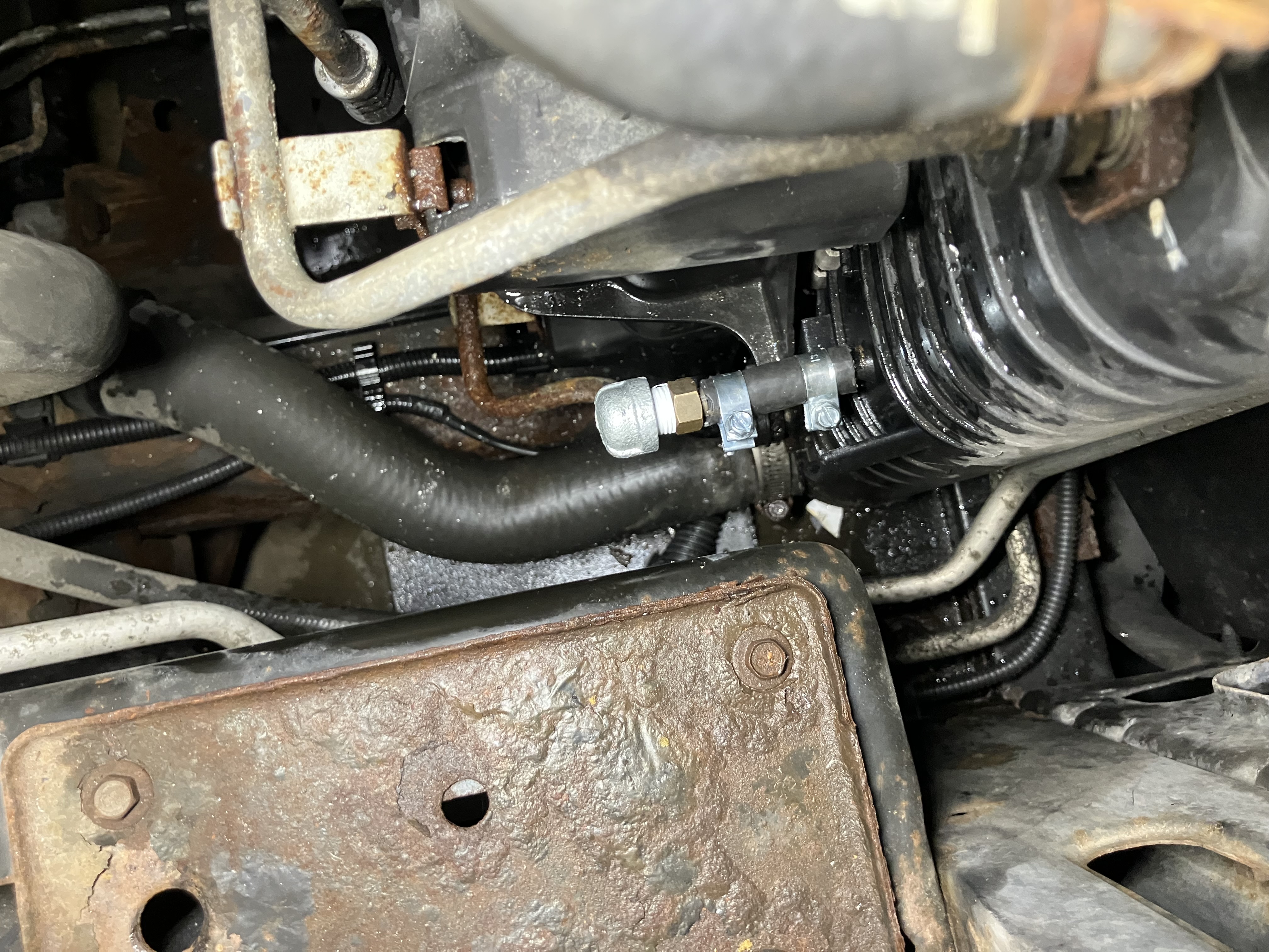 There is an auxiliary port on the radiator that is not needed for the 4.3 V6 which had been plugged with a vacuum line plug and a hose clamp. This plug had cracks in it. When we were looking to buy it I noticed it was low on water, he put in a gallon to get it full.