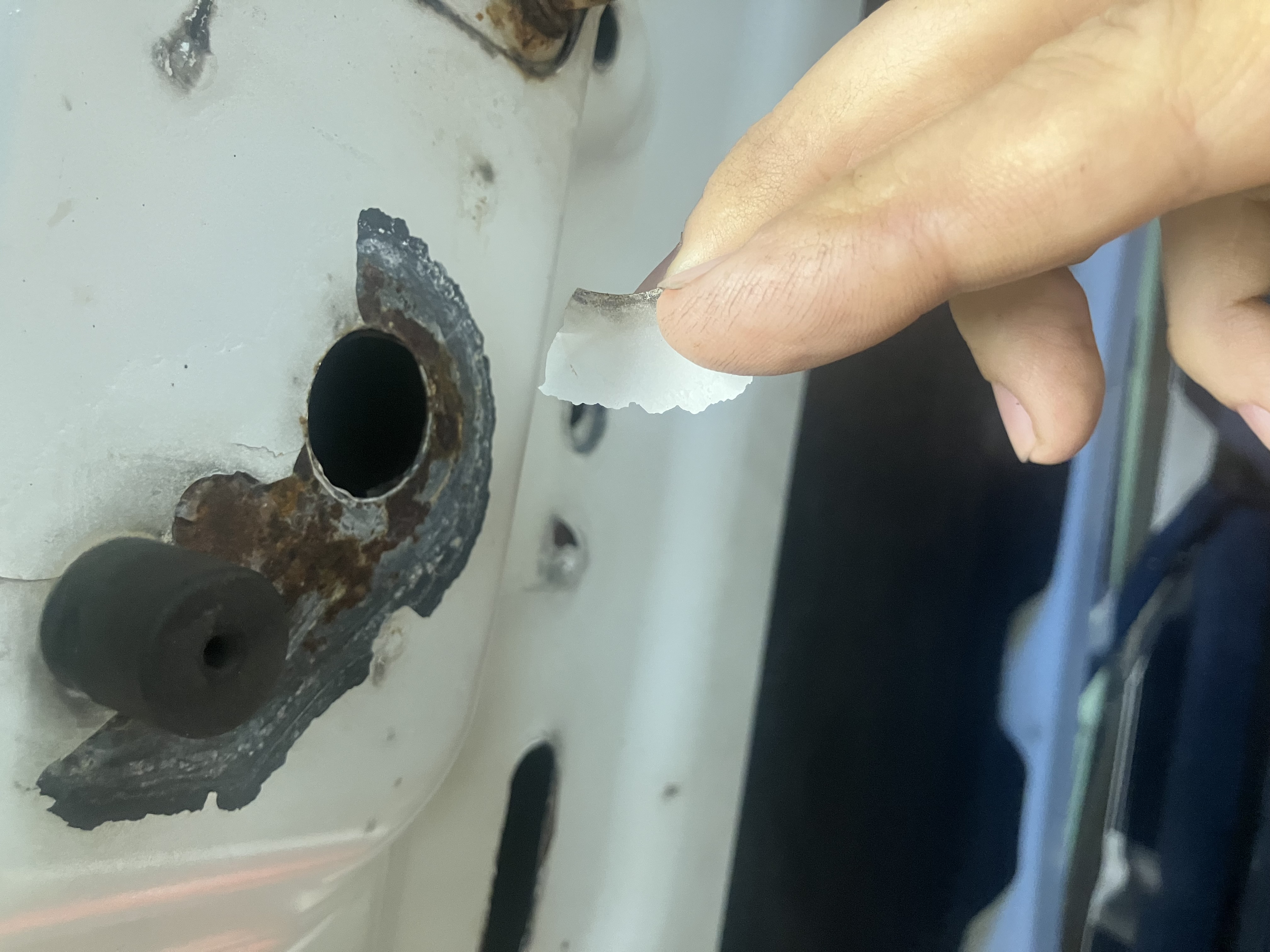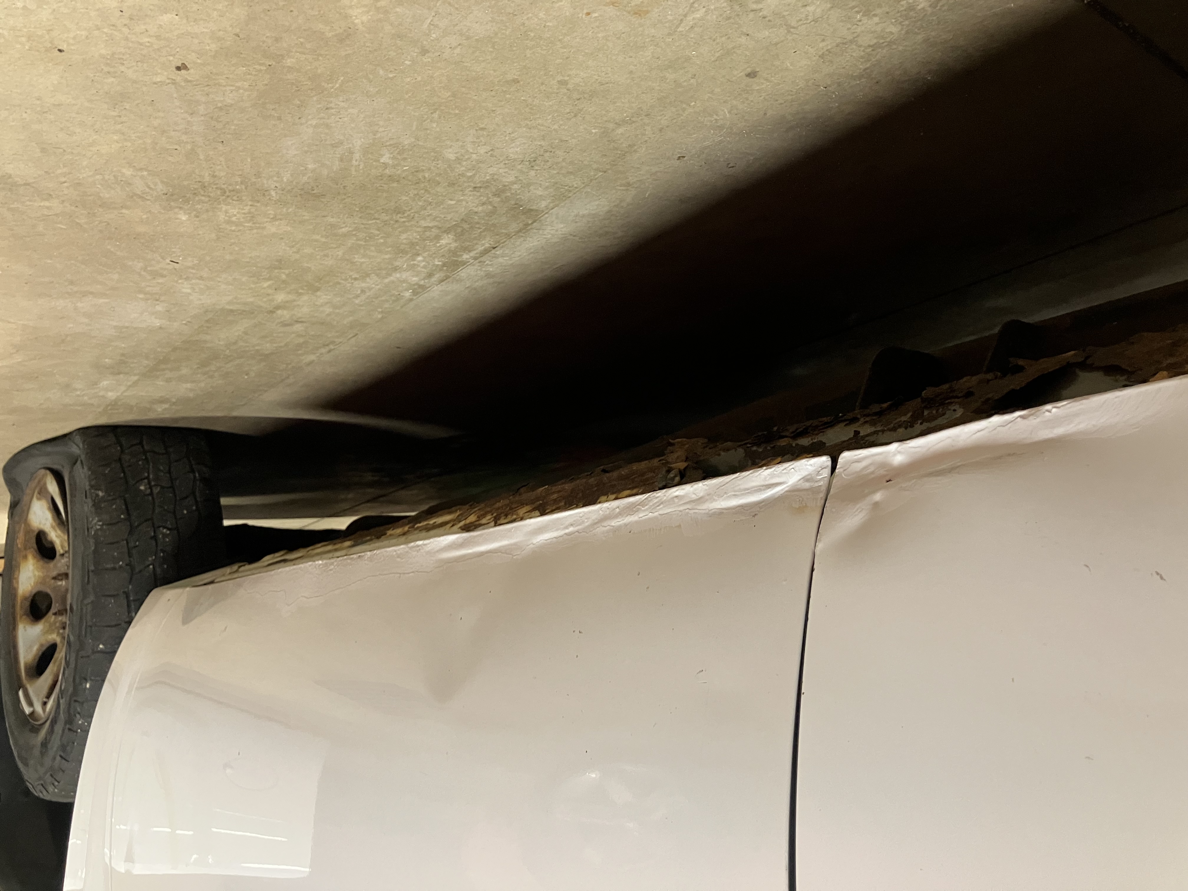 The rocker panels were all there when I looked at it but rusty. I was easily able to poke holes in them with my fingers. The hammer brought down a lot more rust.