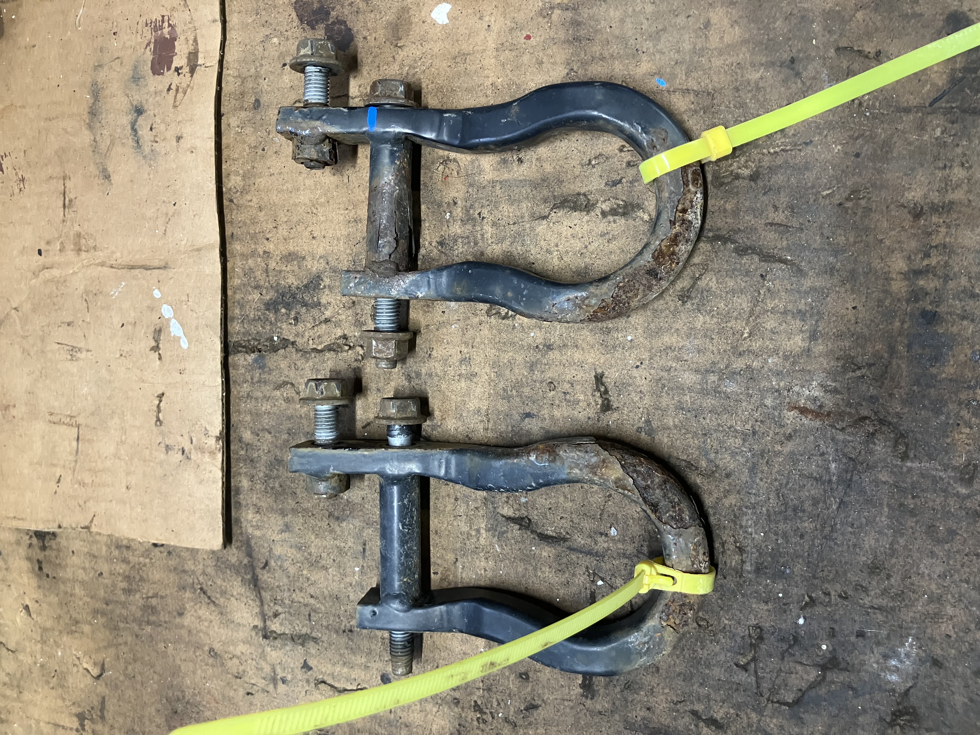Acquired some at pull a part, which were cleaned, painted and installed. While I was under the front I noticed the air dam was disheveled so I reconnected it properly. More white paint and a little body straightening