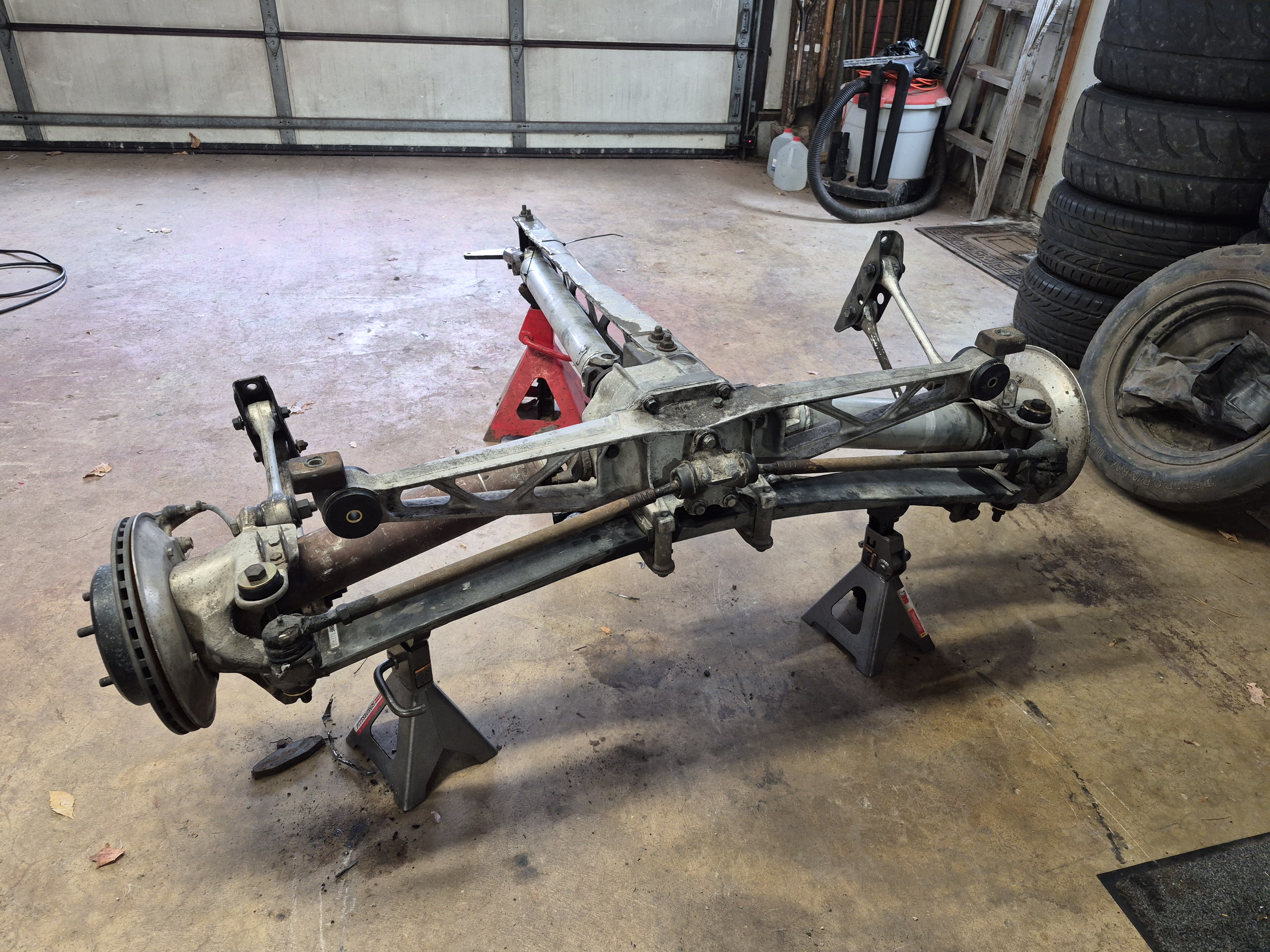 Today we finished with the bushing replacement on the rearend, and it got close to two quarts of fresh synthetic 75-90 rear diff oil and a tube of posi additive. Next week we'll make a plan and start getting after taking the old Dana 36 out.