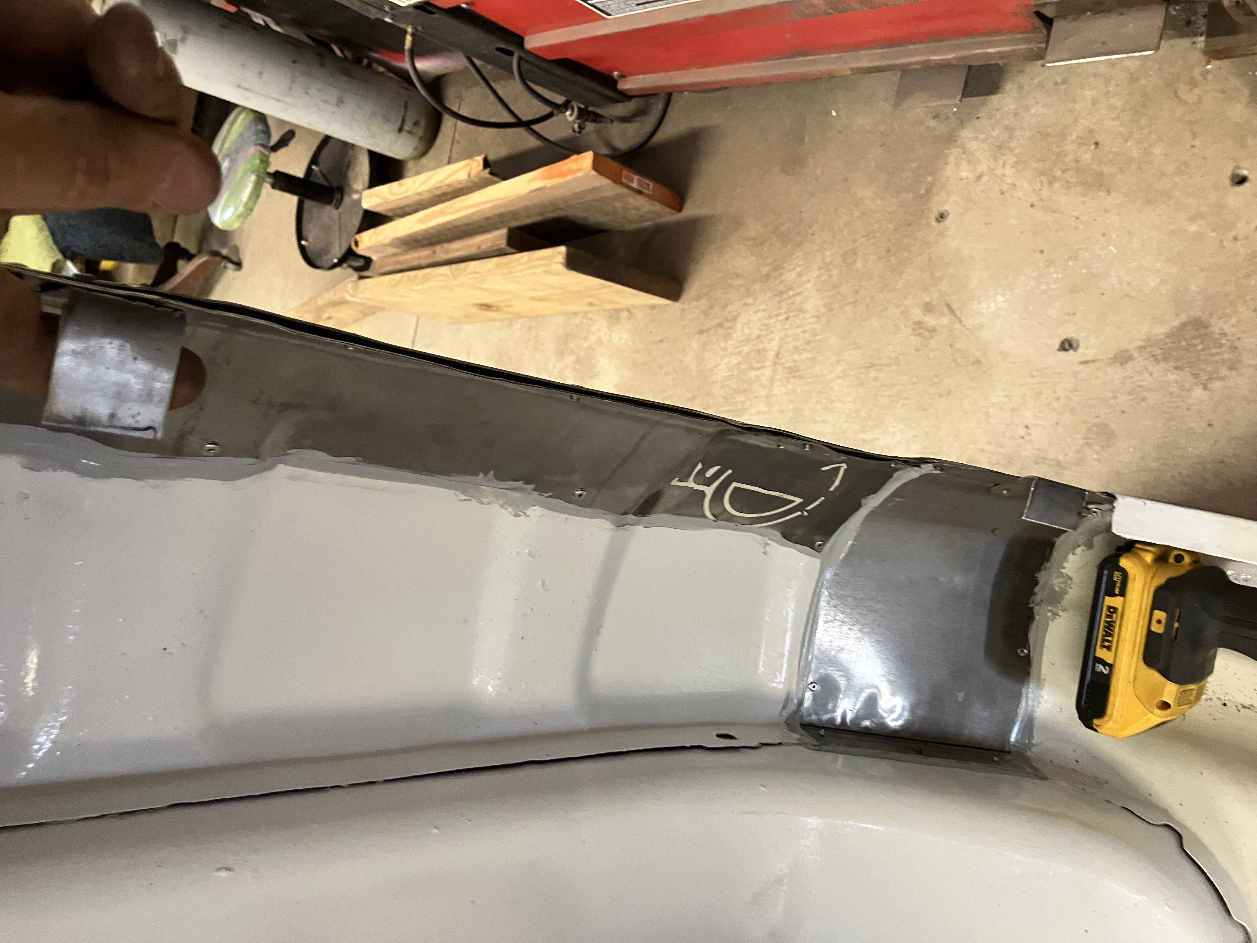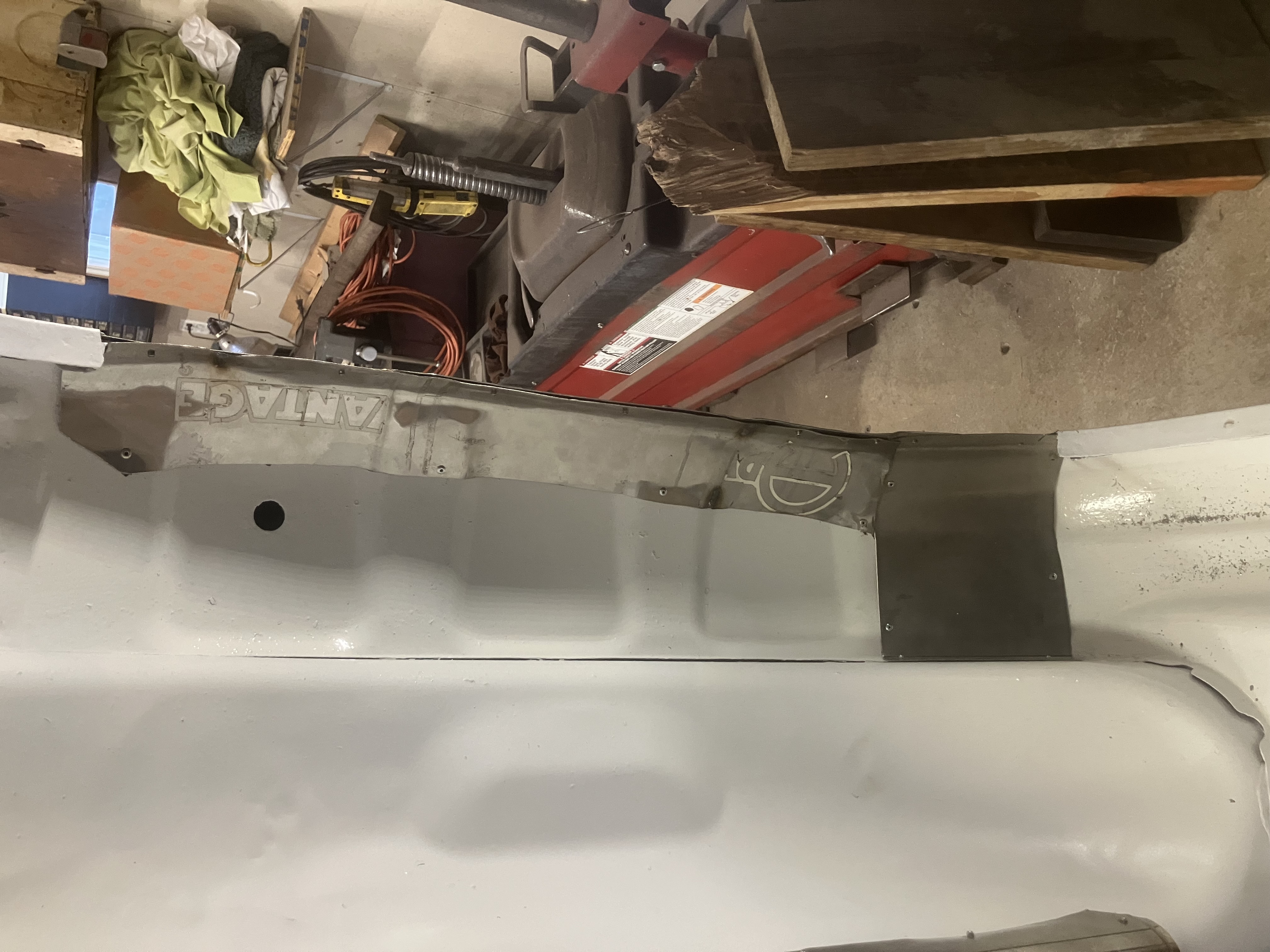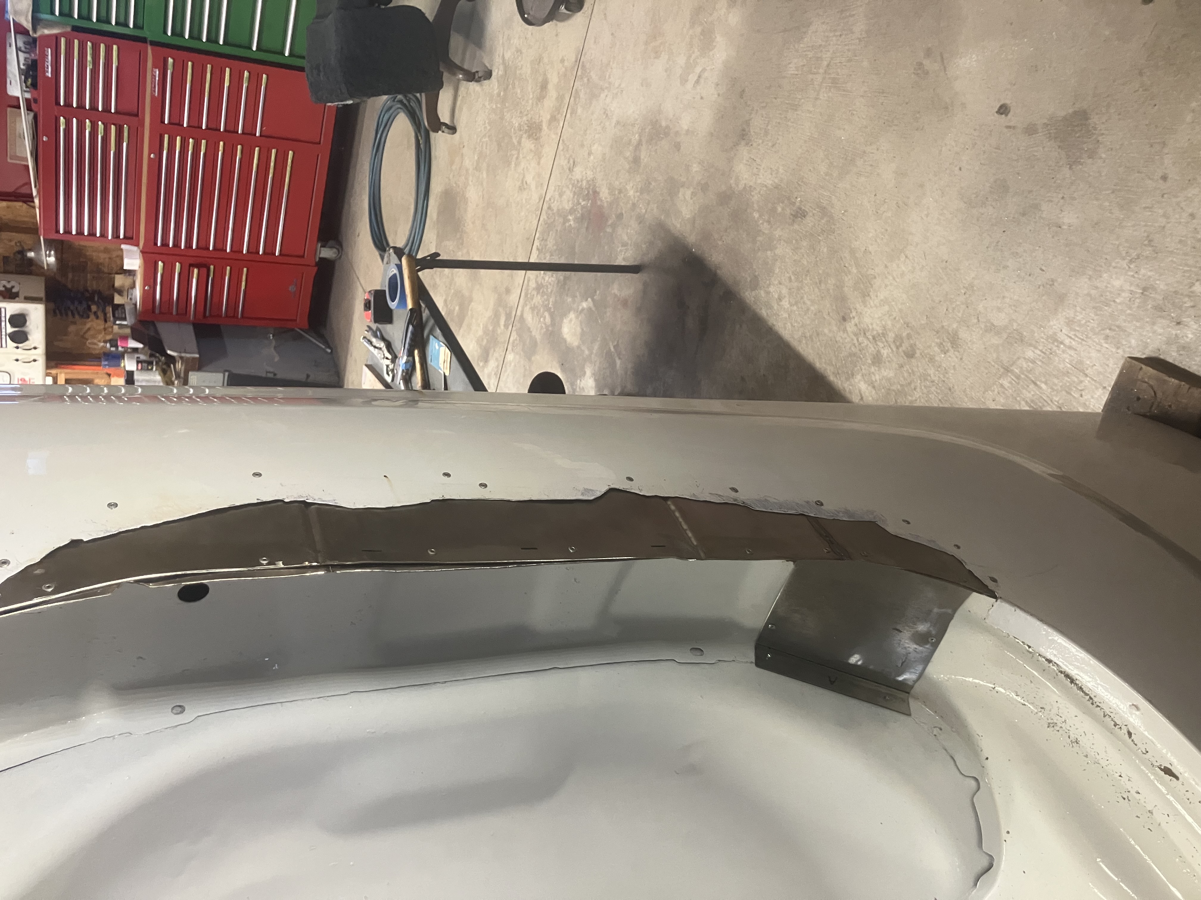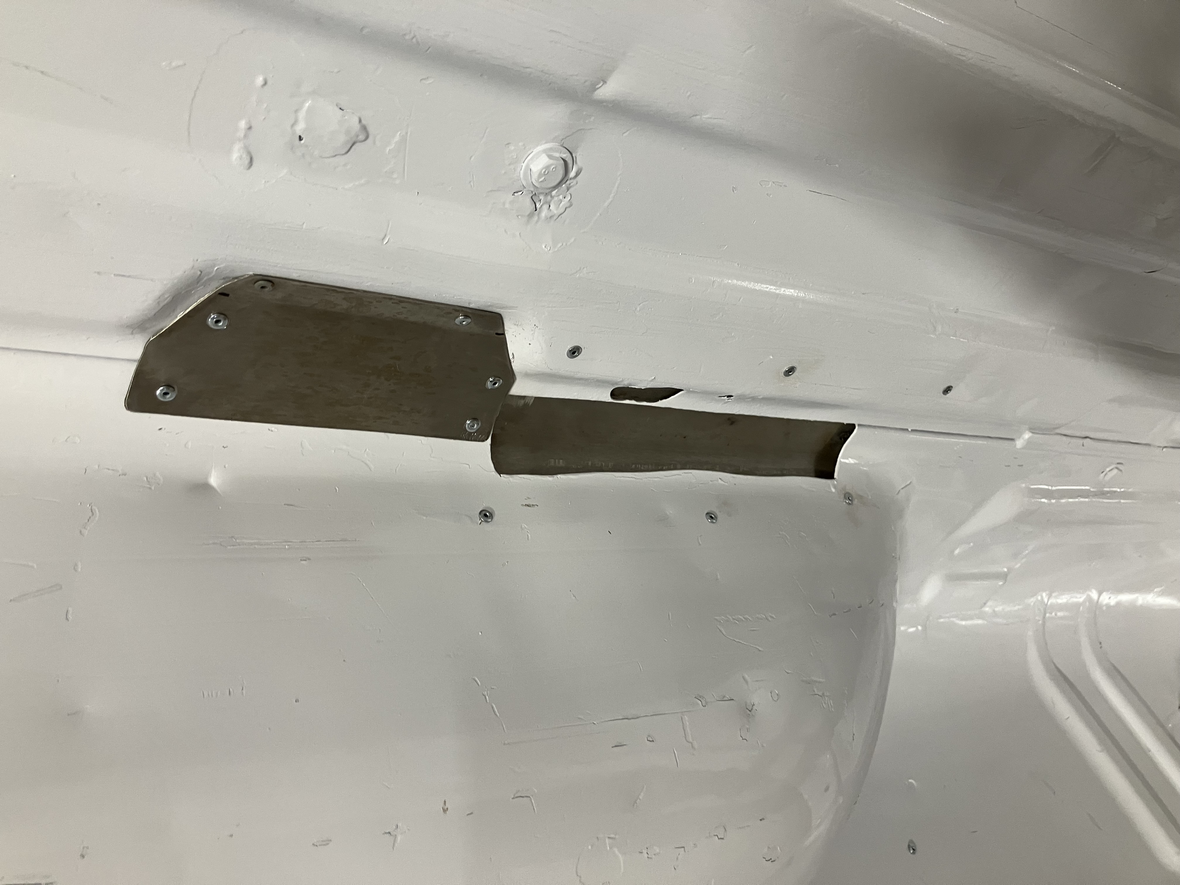 This worked well. I didn’t go crazy with prep – it had been <24 hrs since I applied primer so it should adhere to that reasonably well. I didn’t even sand it. I just wanted that layer of protection and color coordination. After that the patches needed installed. Did all that with pop rivets.