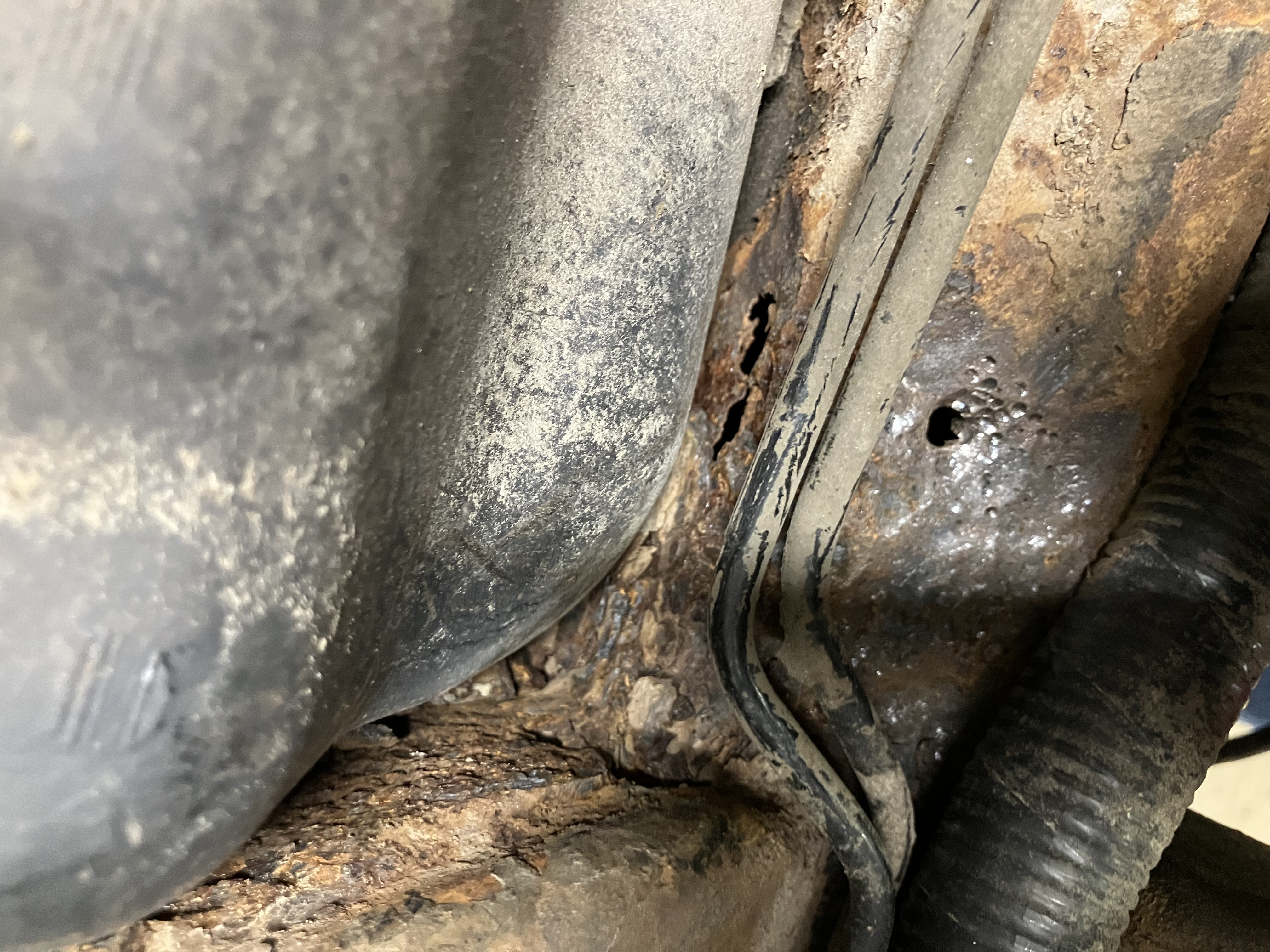 When buying this truck we could see the cross braces under the bed were rusted. Walking in the bed I could hear them crunching under there. It also had rust at the tops of the wheel wells but looked pretty salvageable.
