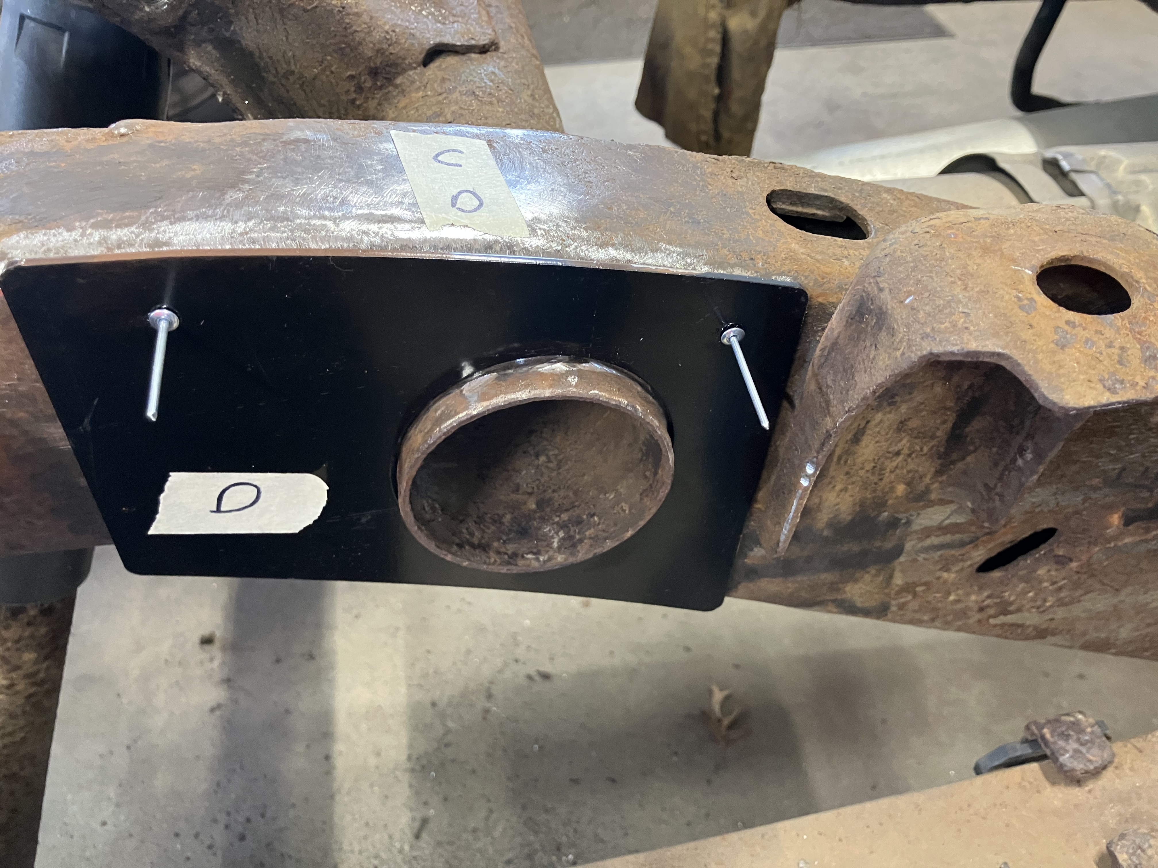 This UHaul unit came from Pull-a-Part. It was under a truck that had been sprayed down with oil to prevent rust, so it was grimy and rusty. It was under $40 and it has all the hardware . I knocked off most of the rust, applied the rusty metal primer and covered the affected areas with black Rustoleum.