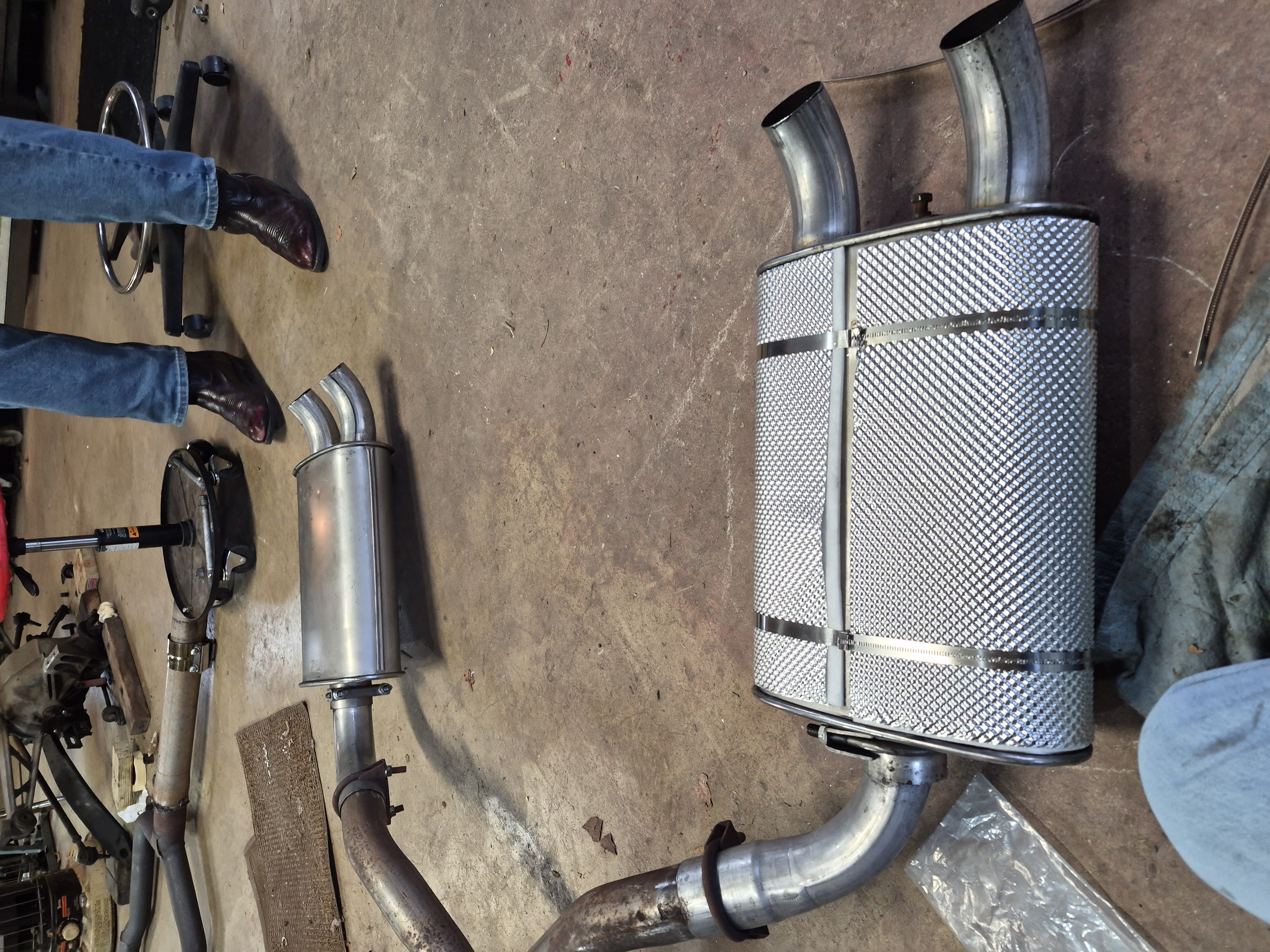 Also got the mufflers wrapped with some DEI sound deadening material. More to come.