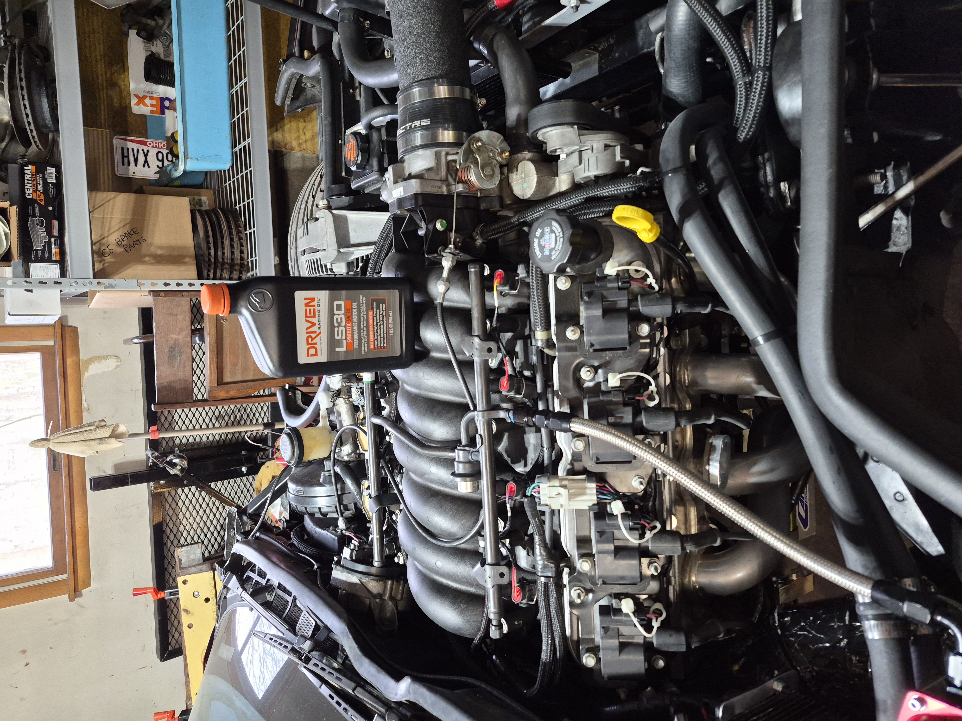 Since the mileage counter does not function anymore, we're just going to change the oil once a year at this point. It hasn't been probably 1000 miles since we put the Mobile 1 in with the motor swap, but since the motor was opened up, I thought it could use a fresh filter and oil. This time it got seven quarts of Driven LS30 oil, which is what I use in the S10.