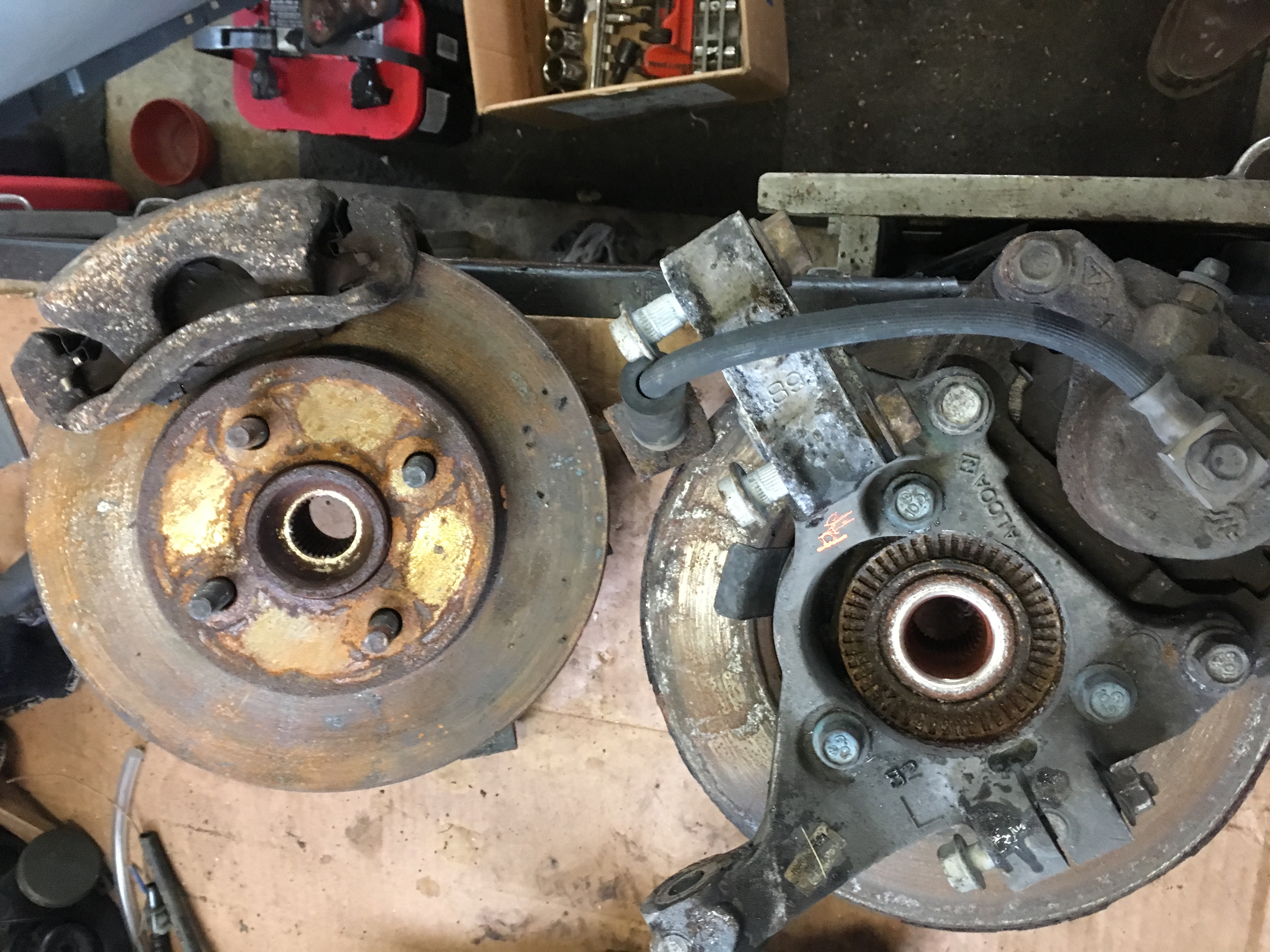 2) I did align the ball joints OK but the geometry of the knuckle puts the hub lower in the Ion knuckle.