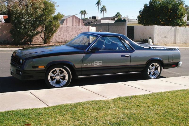 I've always liked a good two-tone -- but I'd take the gray all the way down to the bottom. The Torq-Thrust wheels are classic, hard to go wrong with them. Chevy did make some El Camino SS's with that actual front-end on them. I'm pretty sure I remember seeing one on Classic's showroom floor back in the day with that same lettering. Probably pretty rare, though.