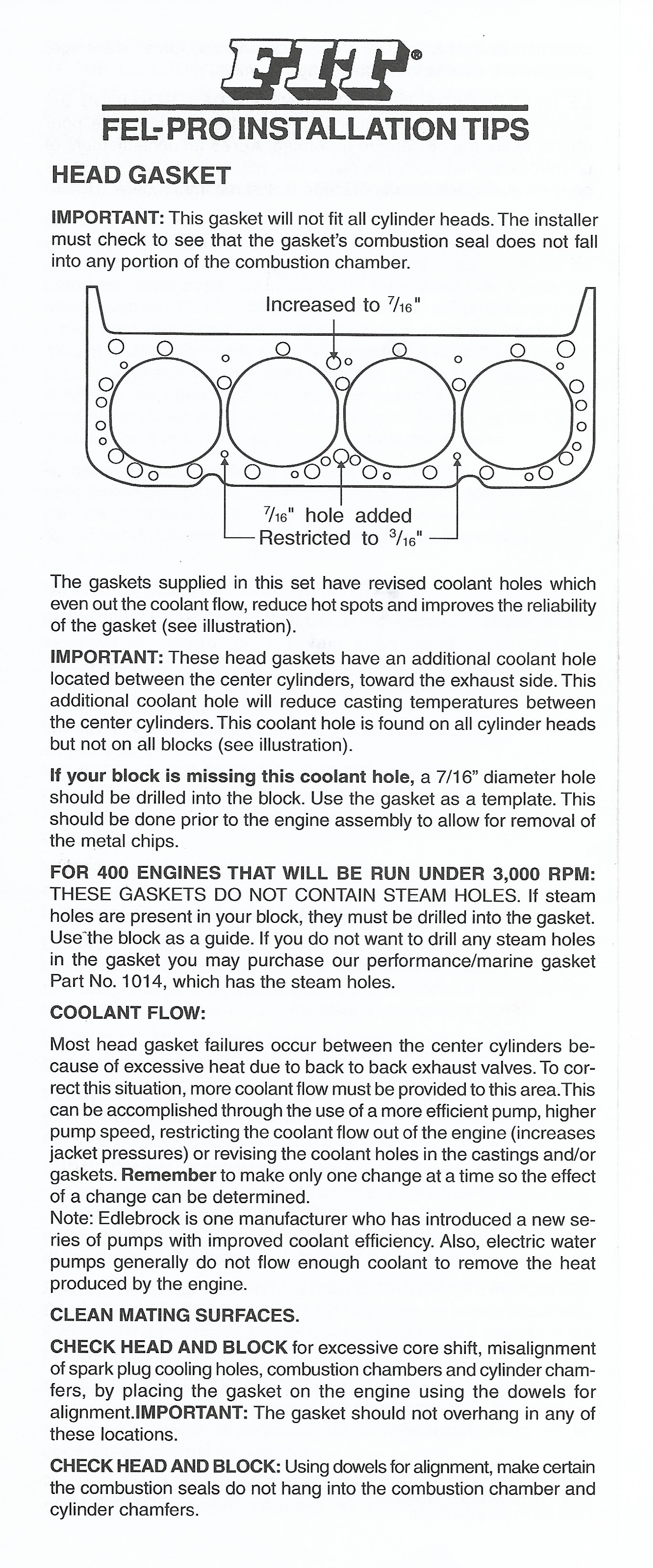 The instructions for the FelPro head gaskets cleared up the mystery of the coolant holes.