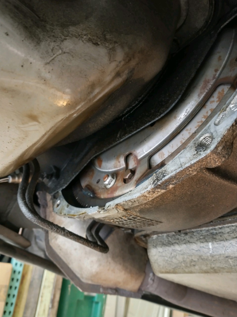I replaced the old steel driveshaft with a new aluminum one. I unboxed most of my other parts too, including the "quad shocks" that mount horizontally to this rearend to prevent wheel hop, and the new brake shoes. I also replaced the fuel filter since its WAY easier to get to as it's mounted just above the rearend.