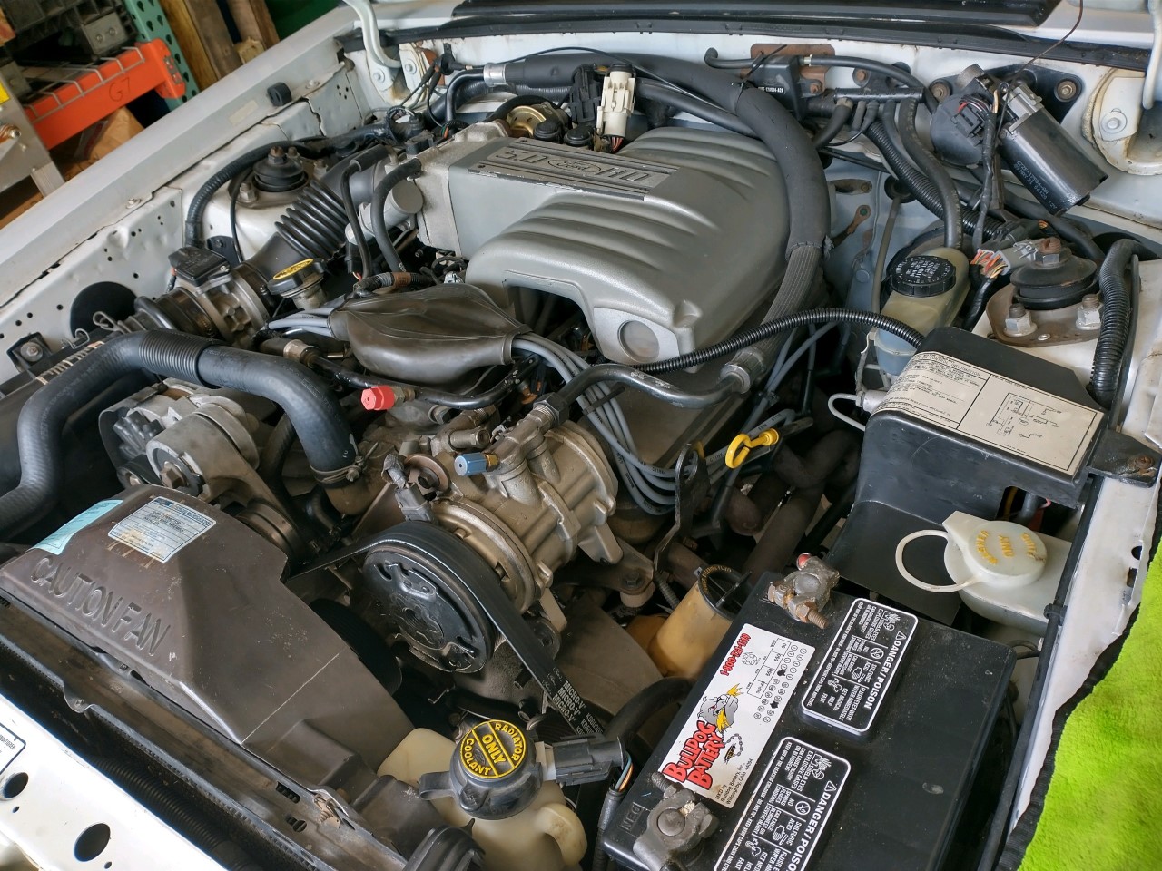 This week I was able to knock out the tune up with all Motorcraft parts. New platinum plugs, cap, rotor, and wires. Disappointing was the fact that the "genuine" Motorcraft wires were a mismatched set from different suppliers, and all wires were about 2" too long. I hate crap like that especially since I'm trying to keep it looking stock, and the lengths were off and there are mismatched boots. The original tune up parts were still on the car IMO, except maybe the spark plugs which looked too good for 65K miles. I also put a K&N (YEAH K&N) drop in filter in.
