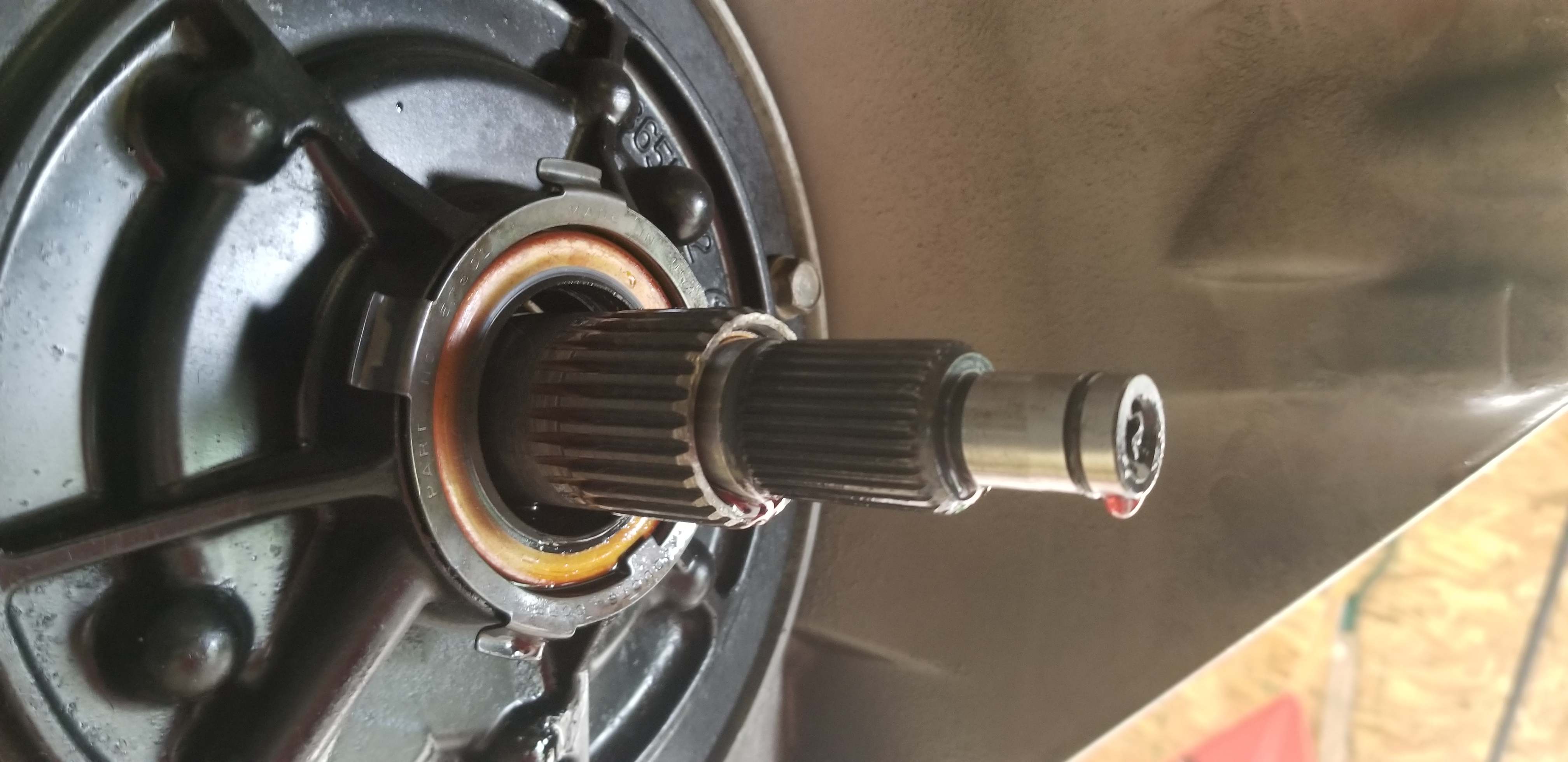 Once we got it out, we made quick work of the converter swap. I took a picture of the input shaft, as I believe the o-ring at the end is vital for the lockup to work. So, I have a picture, it's there. Lockup never worked on the Summit converter. After the converter swap, I made a governor change, from #2/#3 weights to #1/#2 weights to lower the shiftpoints a little.