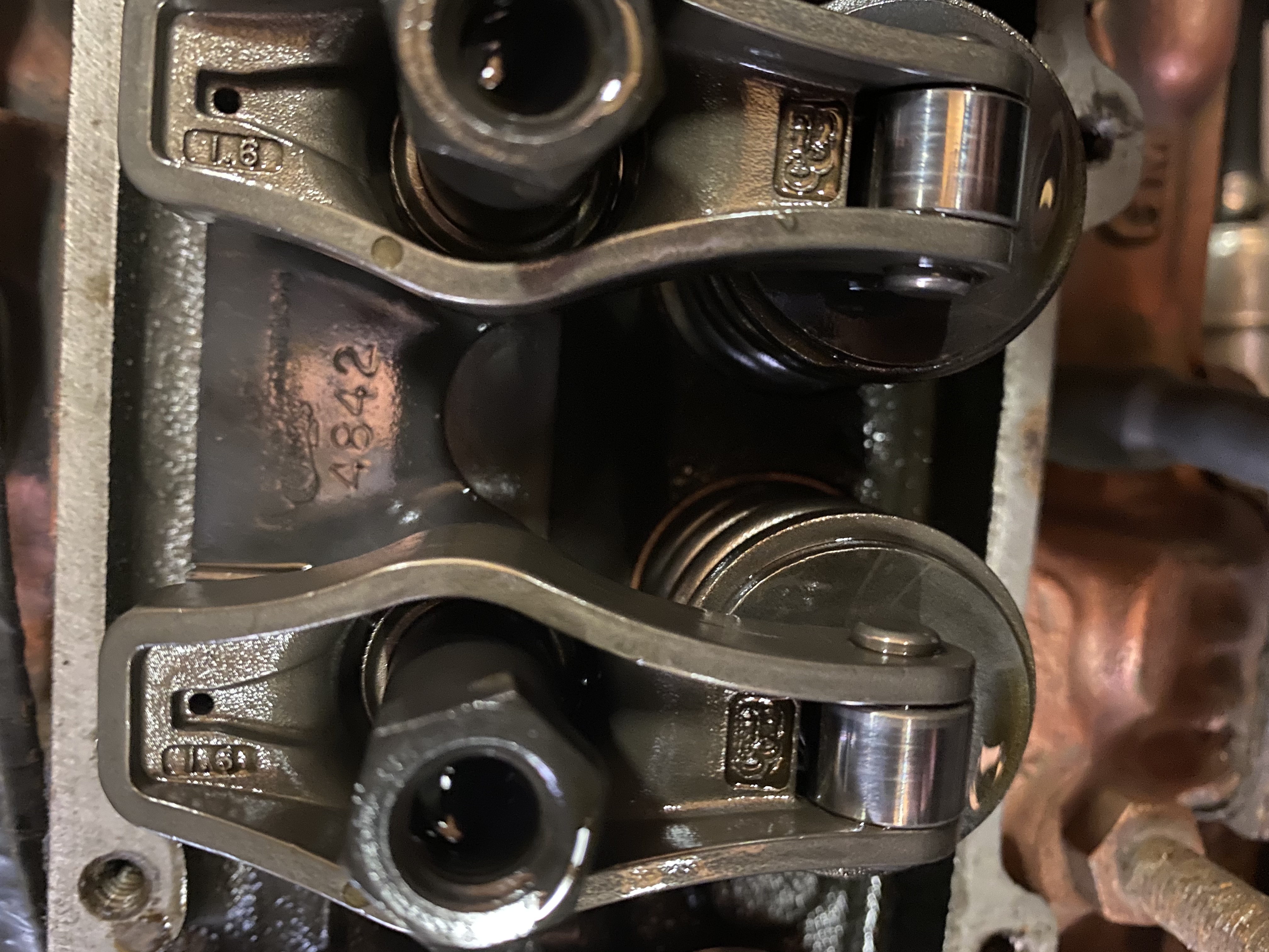 59700.....On Memorial Day I had some spare time to install some chrome valve covers on the 442. I found a set of center hole valve covers on the cheap on EBay and went for it. I’m normally the “chrome don’t get you home” type of guy, but these are a nice clean look and the painted ones that were on the car were looking a bit rougher than I wanted. I got the covers, gaskets and bolts all for under $100. Before install, I permatexted the rubber gasket to the covers so the complete install took about 40 minutes. I was very pleased to see how clean the inside of the motor is. It looks like it was just assembled in there. Anyone who has taken a valve cover off of an Olds knows it can be pretty nasty in there, but I’m in the clear as it’s beautiful in there. I also discovered an adjustable valve train kit that I wasn’t expecting to see. I’ve test driven my work for over 200 miles and I’m not leaking a drop. GM
