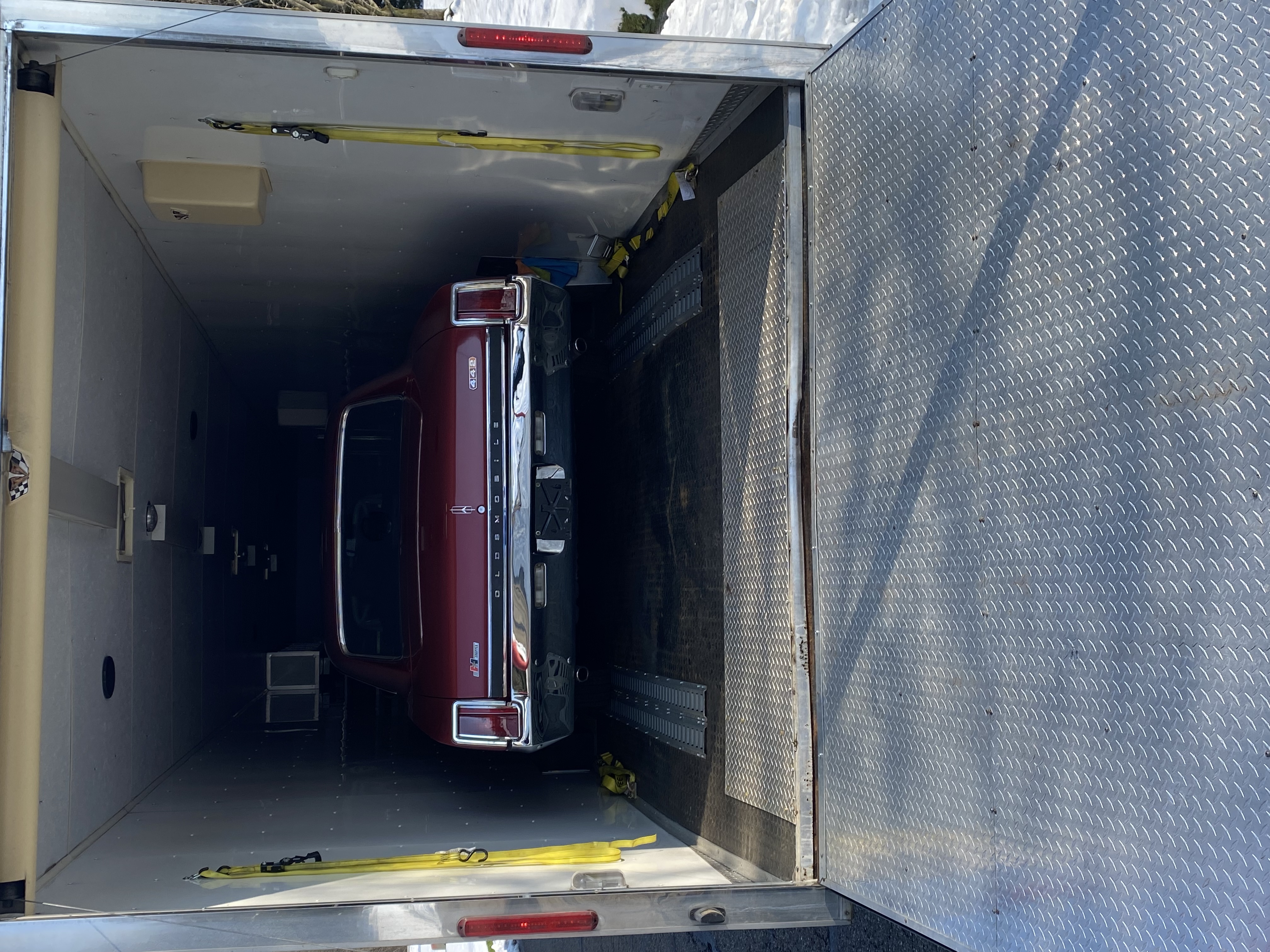 The 442 made it to its new home. I got a text at 8 am yesterday morning from the hauler stating that he’d be at my place around two to pick it up. After some communication, he was at my place at 1:30. We loaded up in the street and his intention was to make a few stops then deliver the car to its owner on Thursday. Sounds like plans changed somewhere along the way as the text came in the evening that the car was going to be at its destination at 11:30 pm…. I got the pic of it in its new crib at 12:30 last night. I plan on having a phone call to discuss any questions the buyer might have, but in the text he stated that he was very happy with the car, which is pretty important to me! This sale from day one to completion went flawlessly. Now to focus on a new project!
