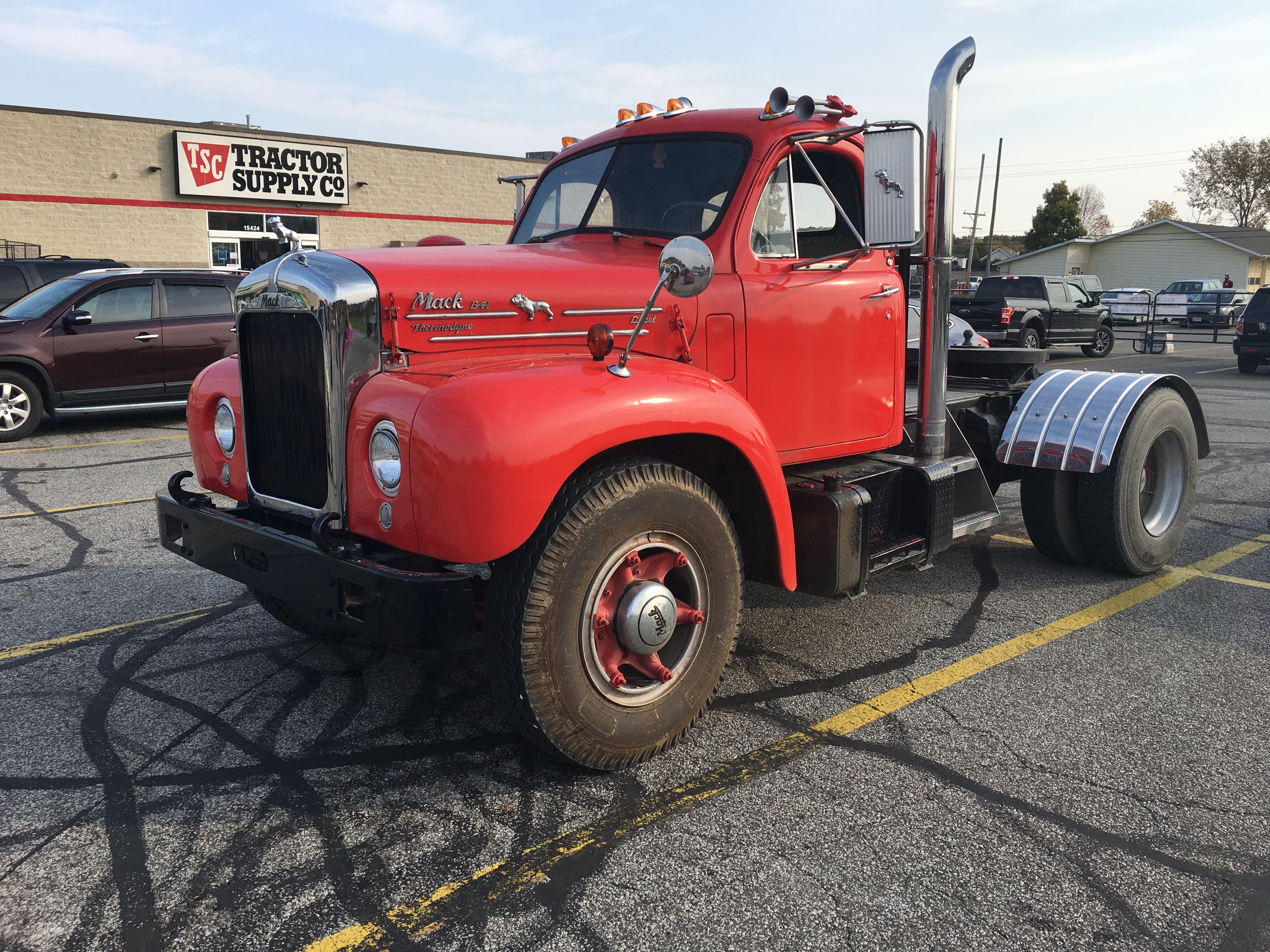 At the local Tractor Supply store today. The coolest part about it was that it was running unattended in the lot as the guy was shopping. Super cool old Mack!