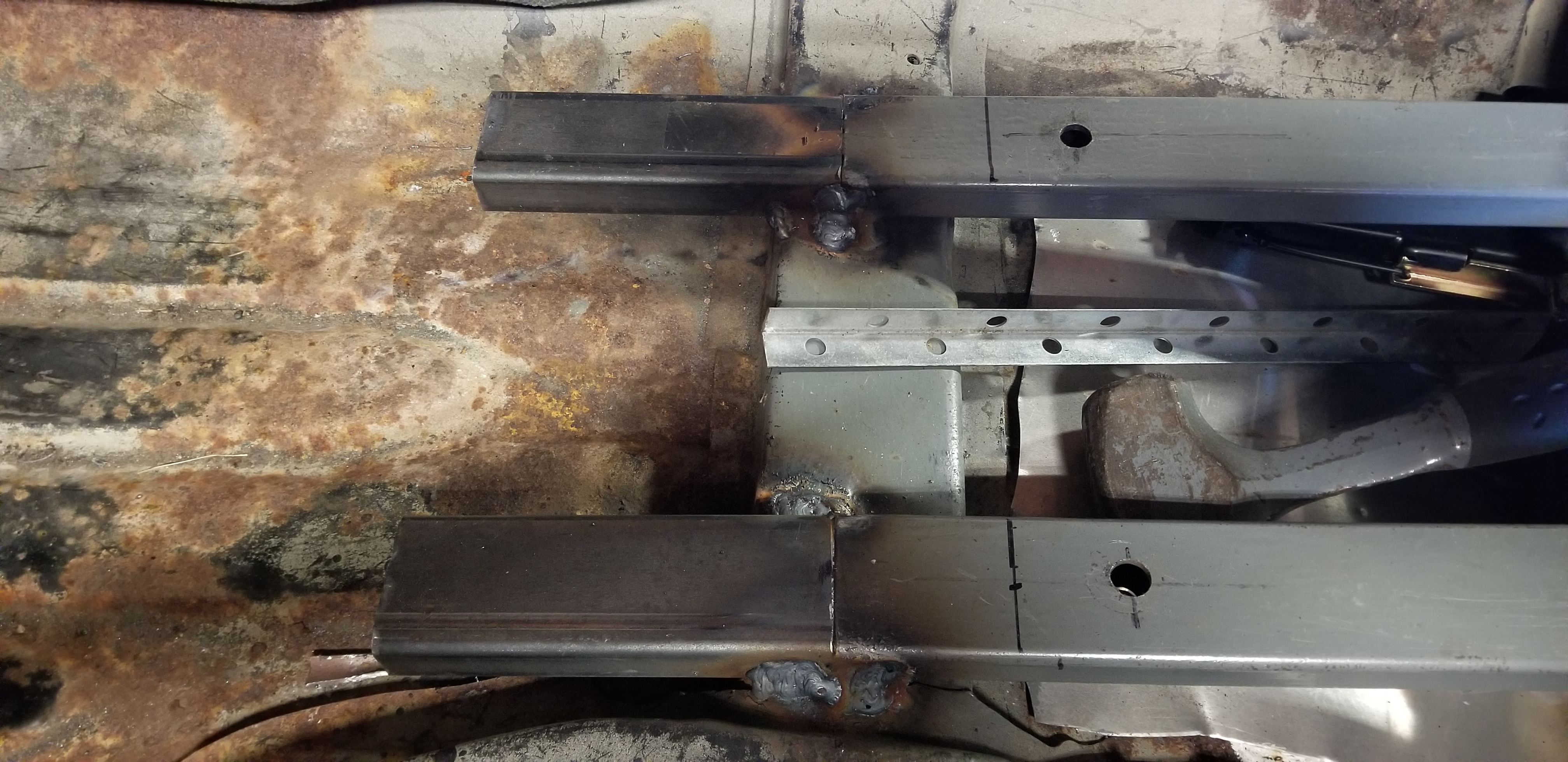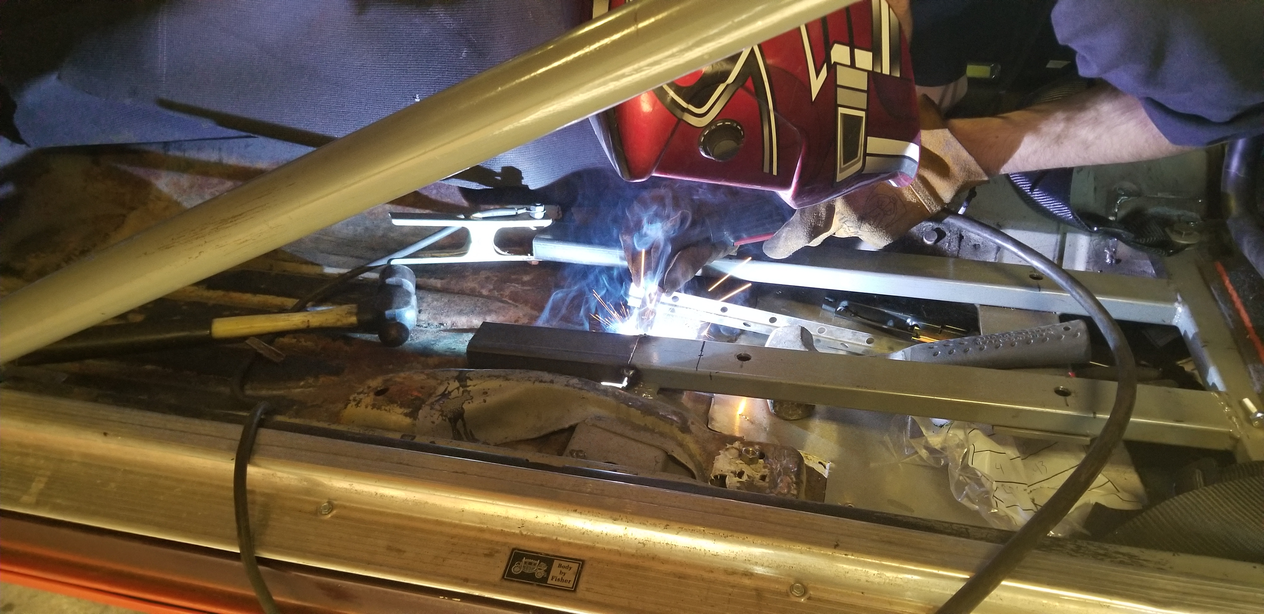 The battery box mount is done. The front seat bars are mostly done. I forgot to have him do the seat adjuster bar.