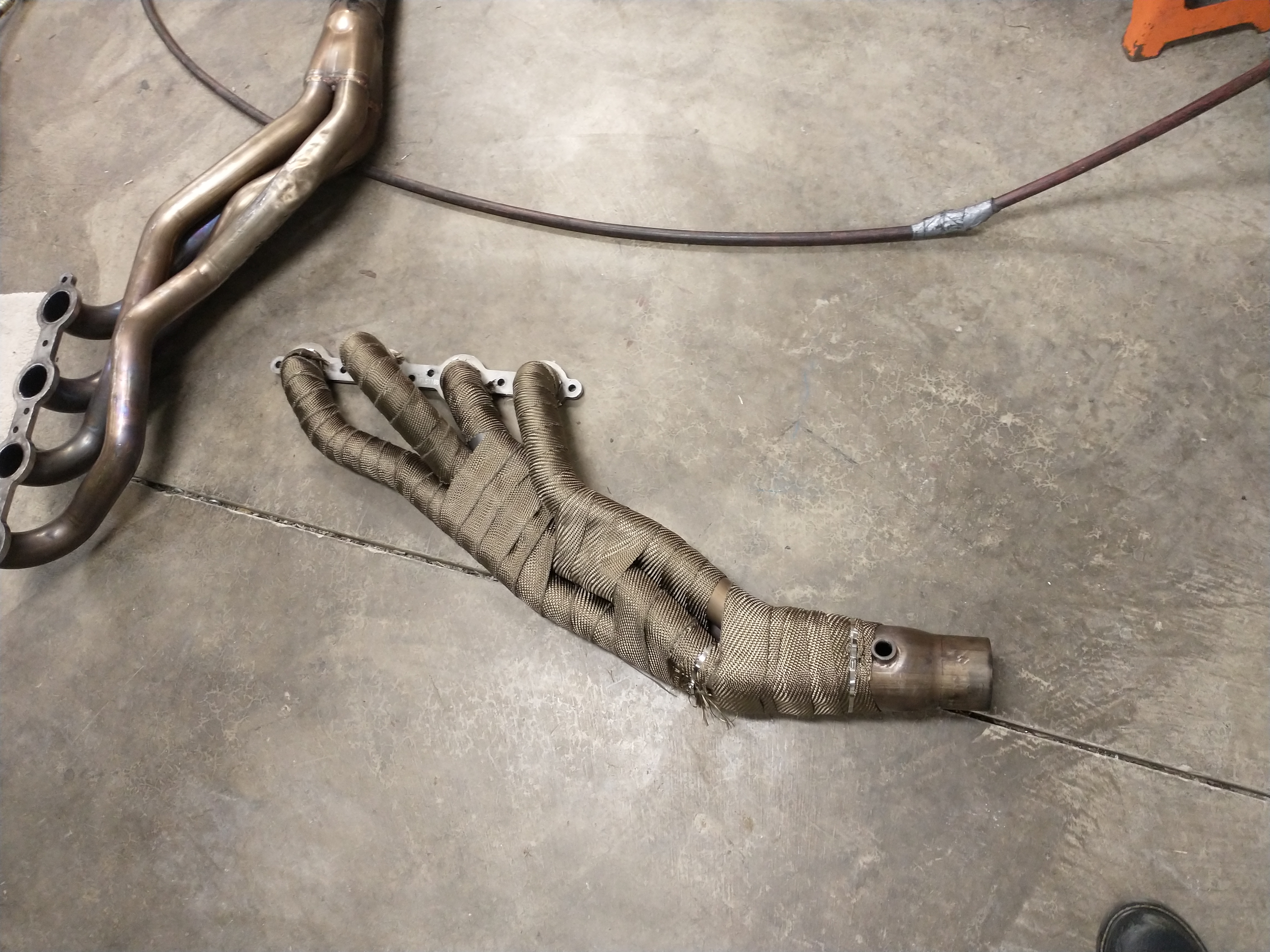 Got both headers wrapped and might put them back in the truck for now. No word on the motor yet, but I won't bother anyone until next week.