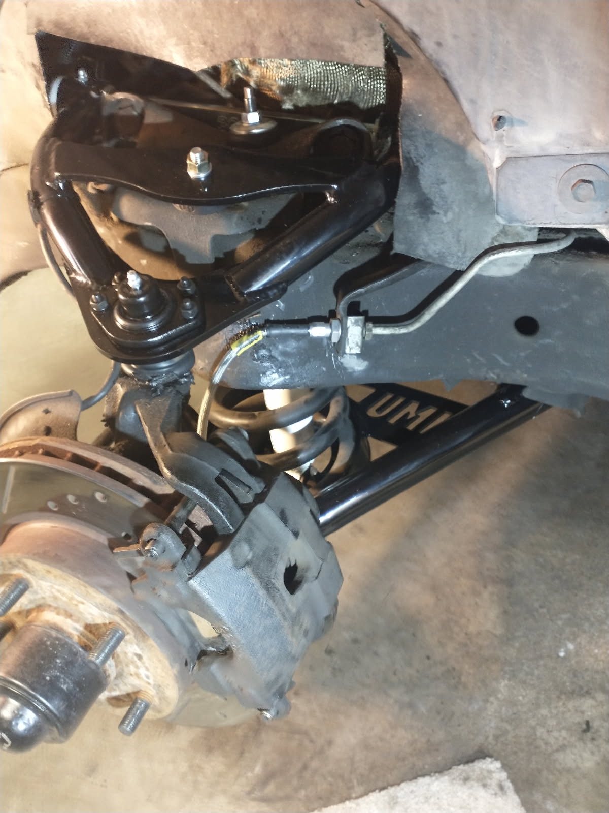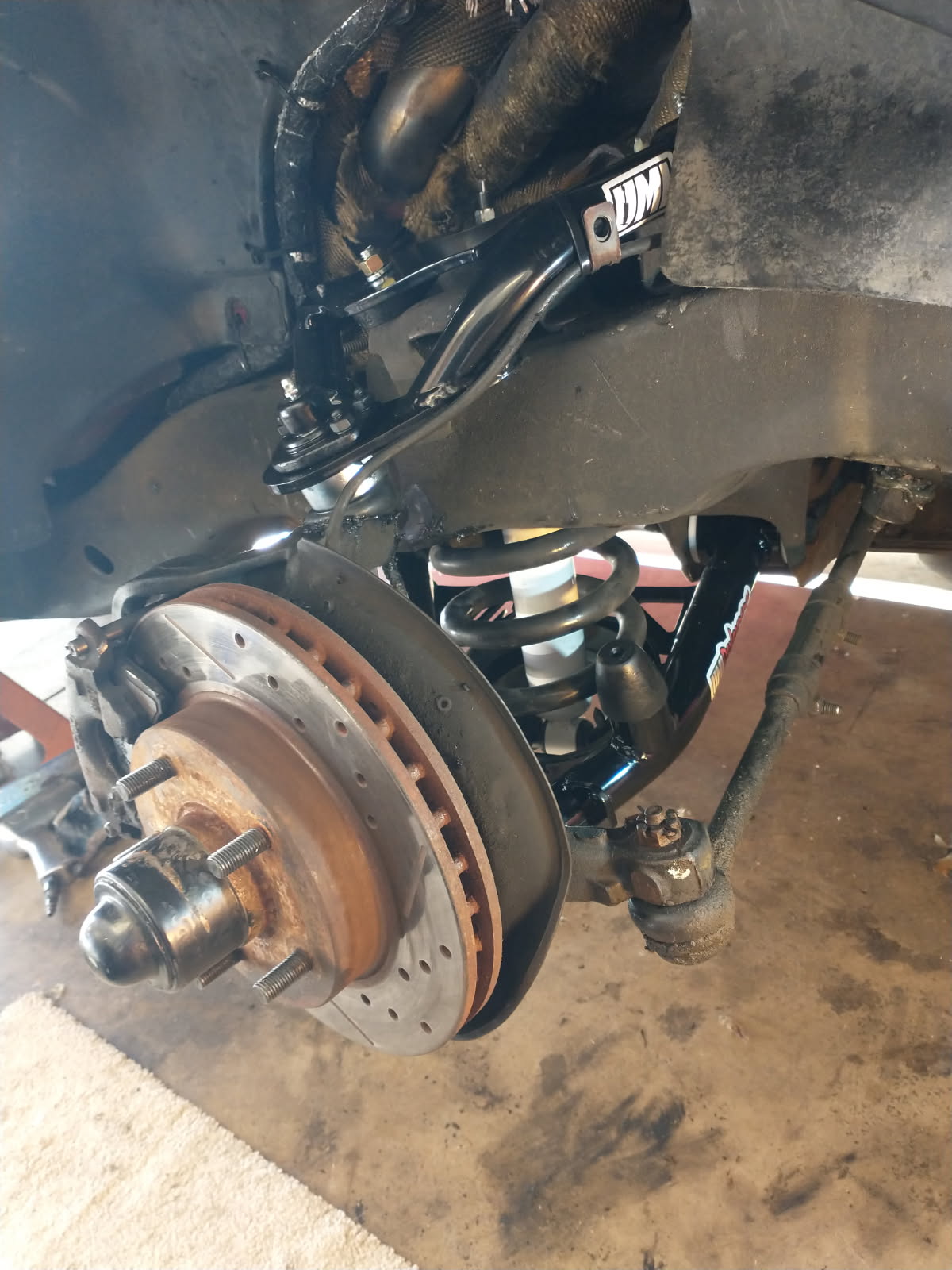 So over the last few weeks I've been working on the front suspension of the S10. I ordered a full set of upper and lowers from UMI Performance, a good USA made brand out of PA. This would normally be a relatively simple job if it weren't for an LS swap with 1-7/8" primary headers taking up a ton of underhood space. I tacked the passenger's side first, assuming it would be the harder of the two based on what I could see visually. I was right. Removing the stock upper arm required that I cut the mounting bar in two. Then I was concerned about installing the new one, but by some miracle, I was able to puzzle it in there without having to move the headers or dismantle anything. In case anyone is wondering, removing the headers requires the engine to come out as well as the bell housing... I'm oversimplifying this because it was a few weeks ago, but I had a solid 12 hours from beginning to end on that side.