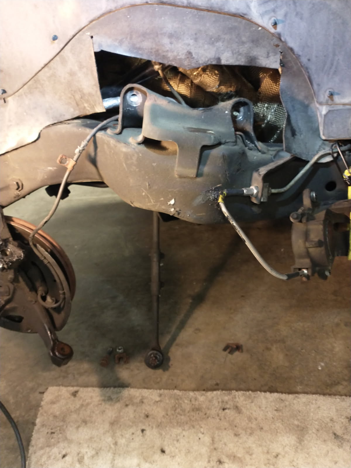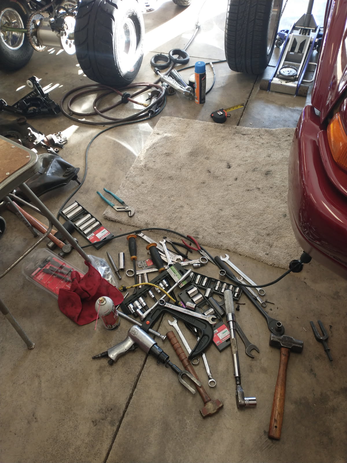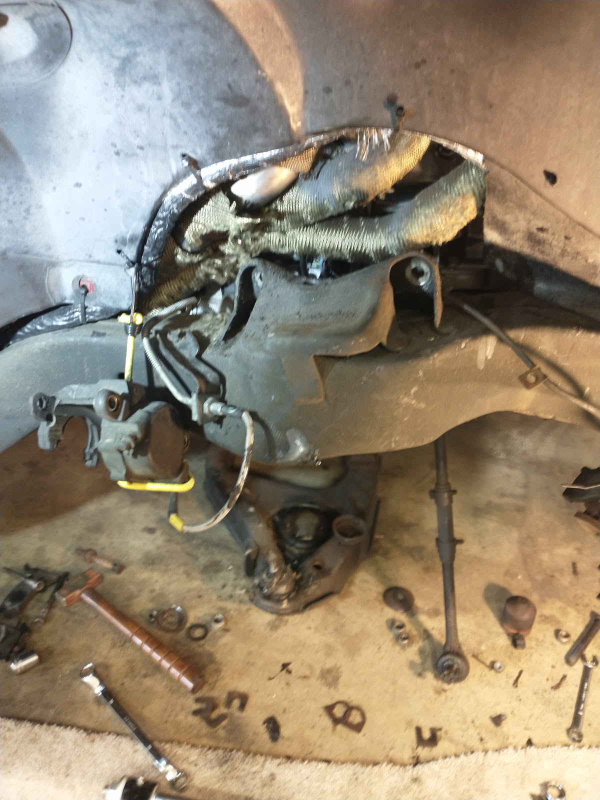 The driver's side was no picnic either, but the actual time to do that was more like six hours, and no cutting required. Just a lot of small space wrenching. What a greasy mess this job was that required a LOT of different tools to make happen.