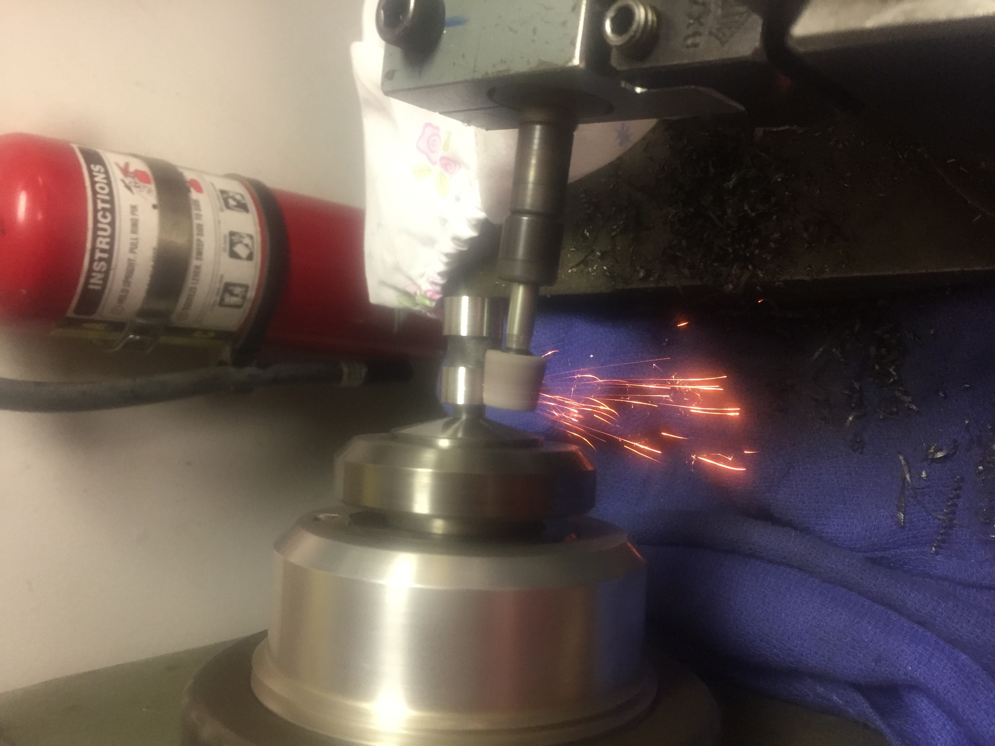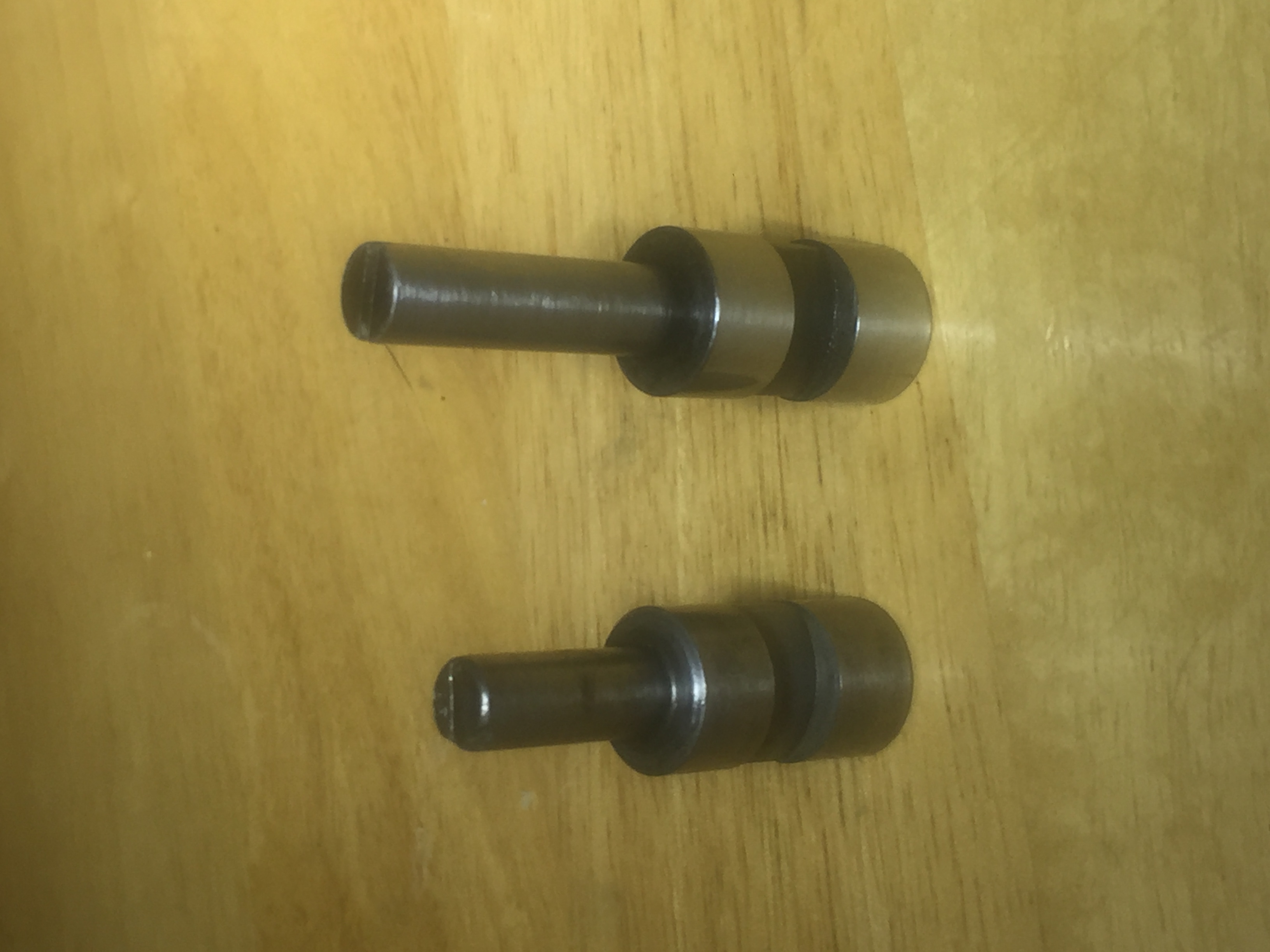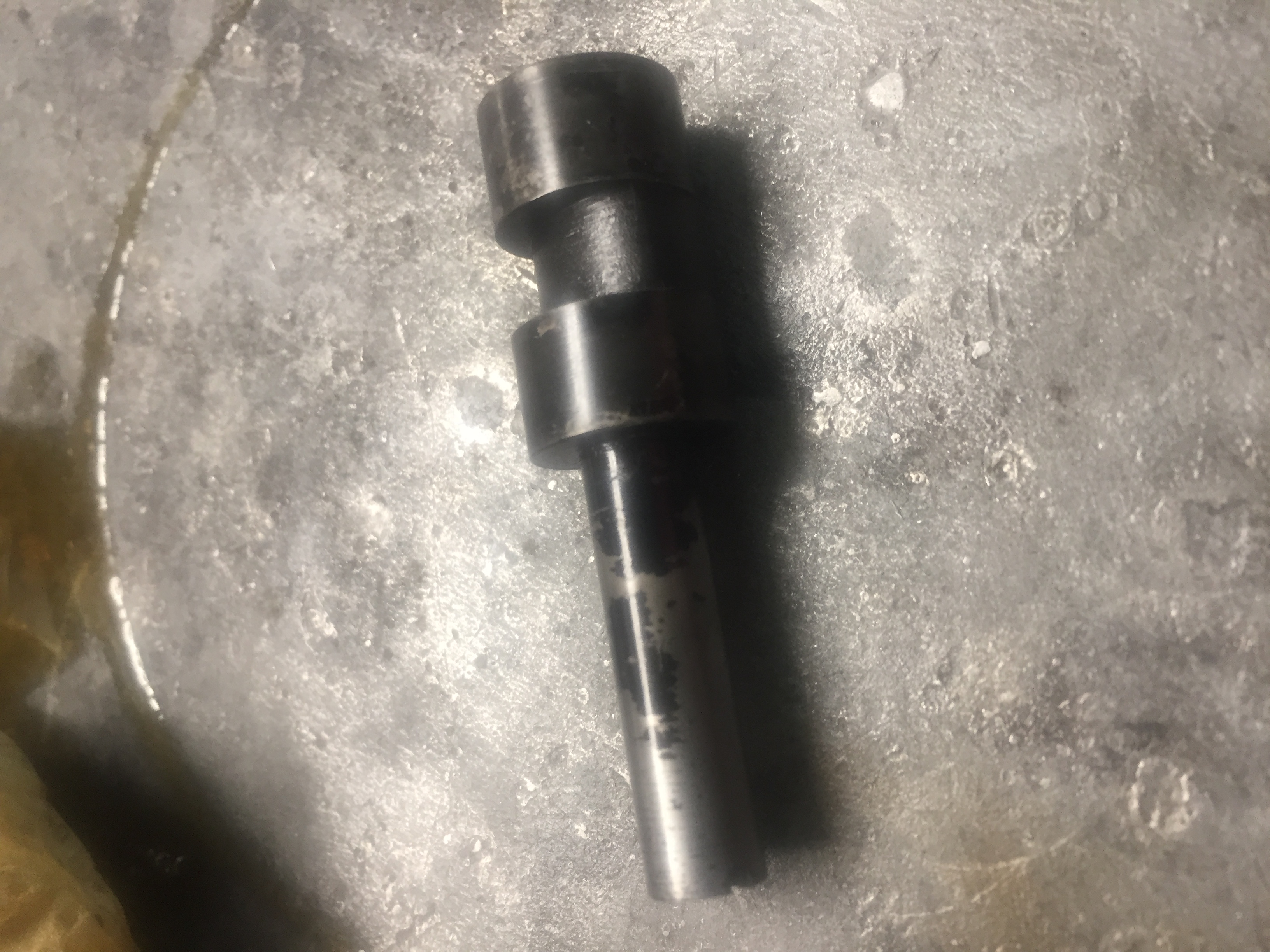 So I opted to try and make a hardened spool valve. My hillbilly hardness tester indicates that a "factory" spool is between 60-65 Rockwell "C" (about the hardness of a dowel pin - aka HARD). While I doubt that I really need to do this - I thought it would be a good challenge so OFF we go! I ordered some O1 (aka "drill rod") because that's supposed to be one of the easiest materials to harden at home. I made the part with the OD having a few extra thousandths that I will grind off later. I then took an old coffee can, put some metal chips in the bottom and filled it with used motor oil that I heated until it just started to smoke. I then heated the main part of the spool until it was just turning a bright red and verified it was NOT magnetic (signaling it is hot enough) - I then dropped her in the oil!!!!! Let it cool - retrieved it and ran a file across it - skated like it was glass - mission accomplished. I purposefully did NOT heat the small shaft up as I felt it was less risk to warp it. Next I cleaned the oxide of the shaft (it came right off with a scotchbrite) and put it in the lathe collet. Using my just rigged up toolpost grinder I took it down to a half thousandth oversize and then polished the last couple tenths off. Came out great - I'm ecstatic.