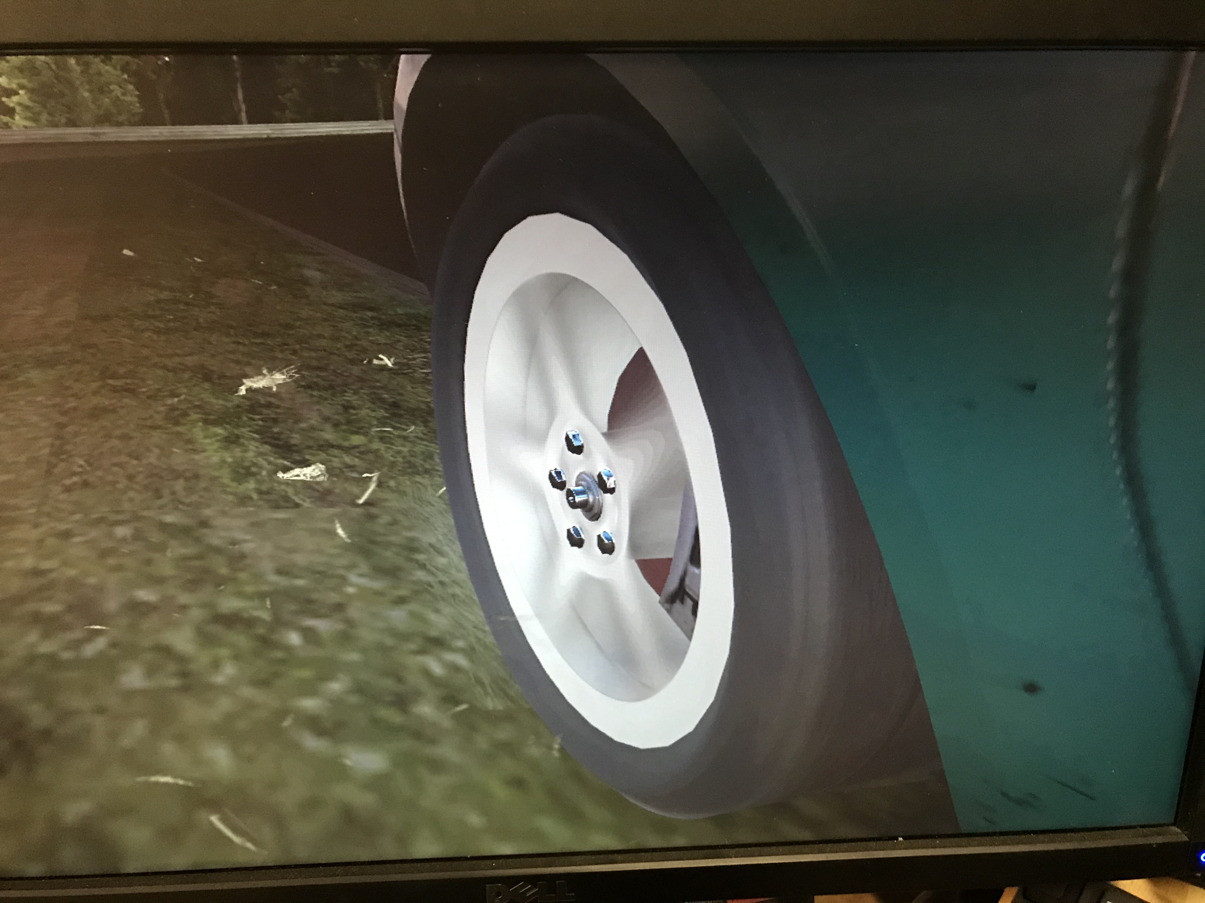 You can see the wheel is turned to left (lower left of the screen)