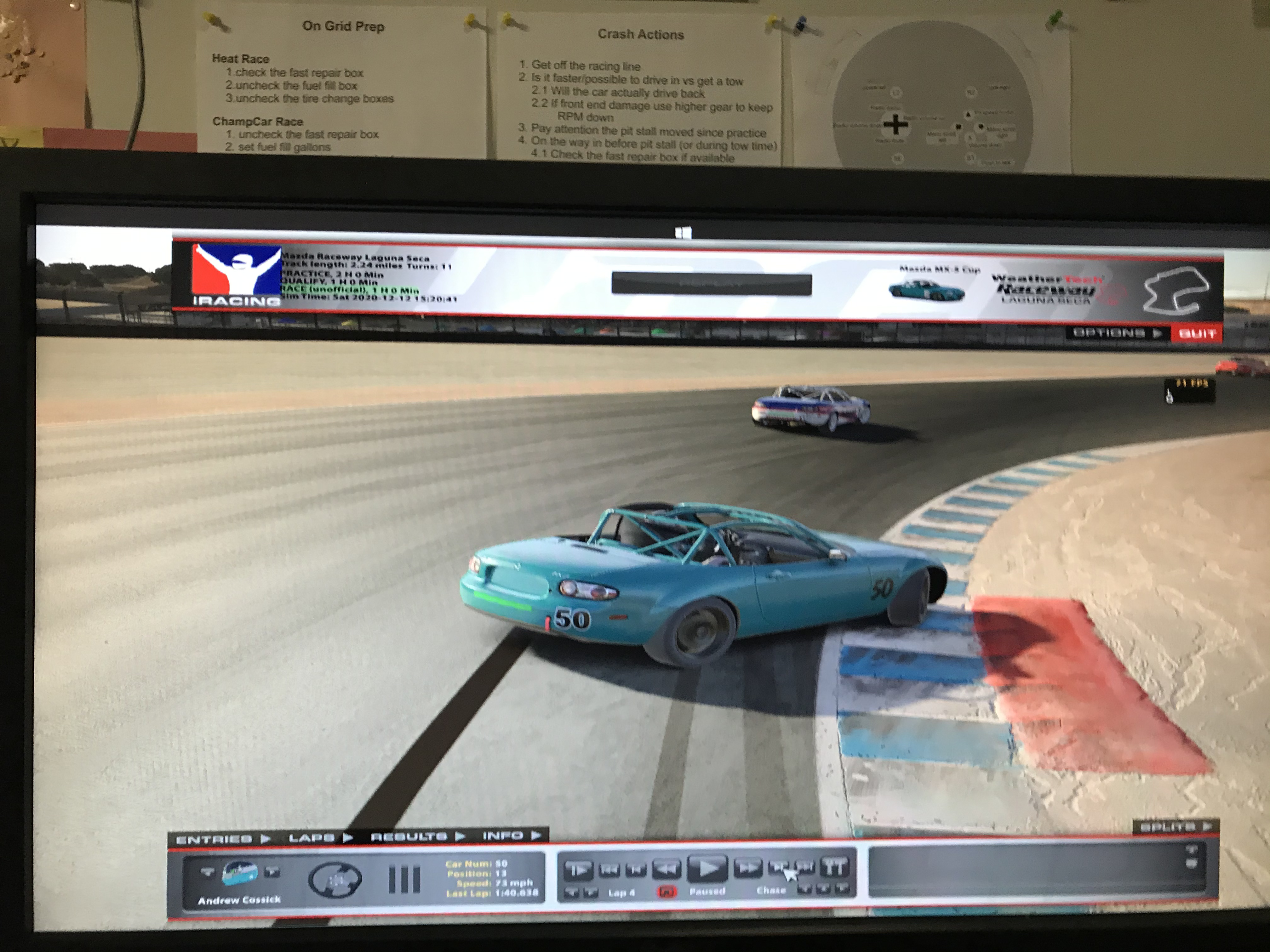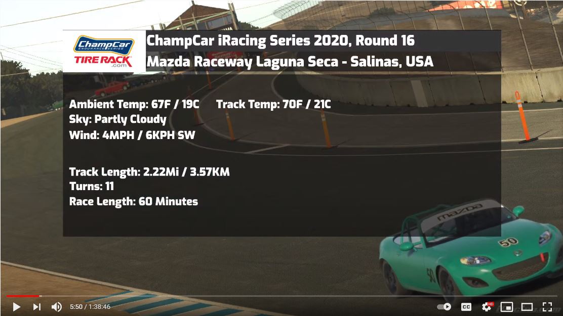 This was the 16th and last version of this iRace series. Laguna Seca is approximately 2700 miles from home,