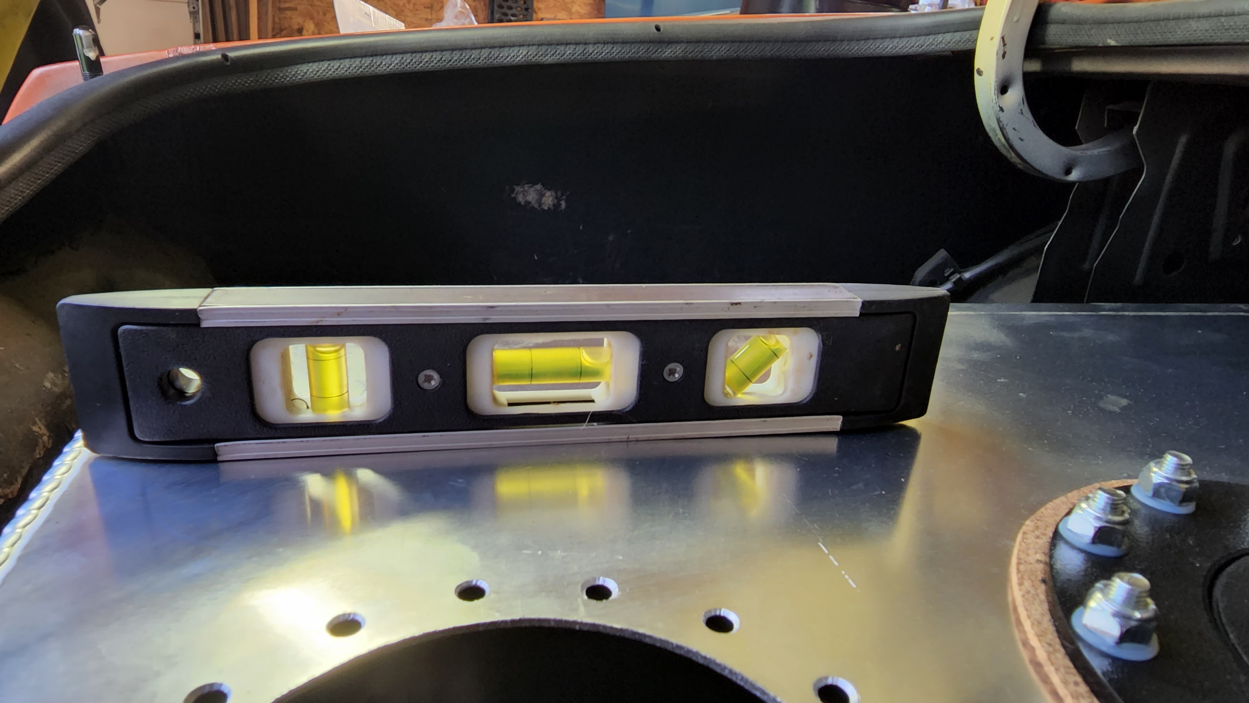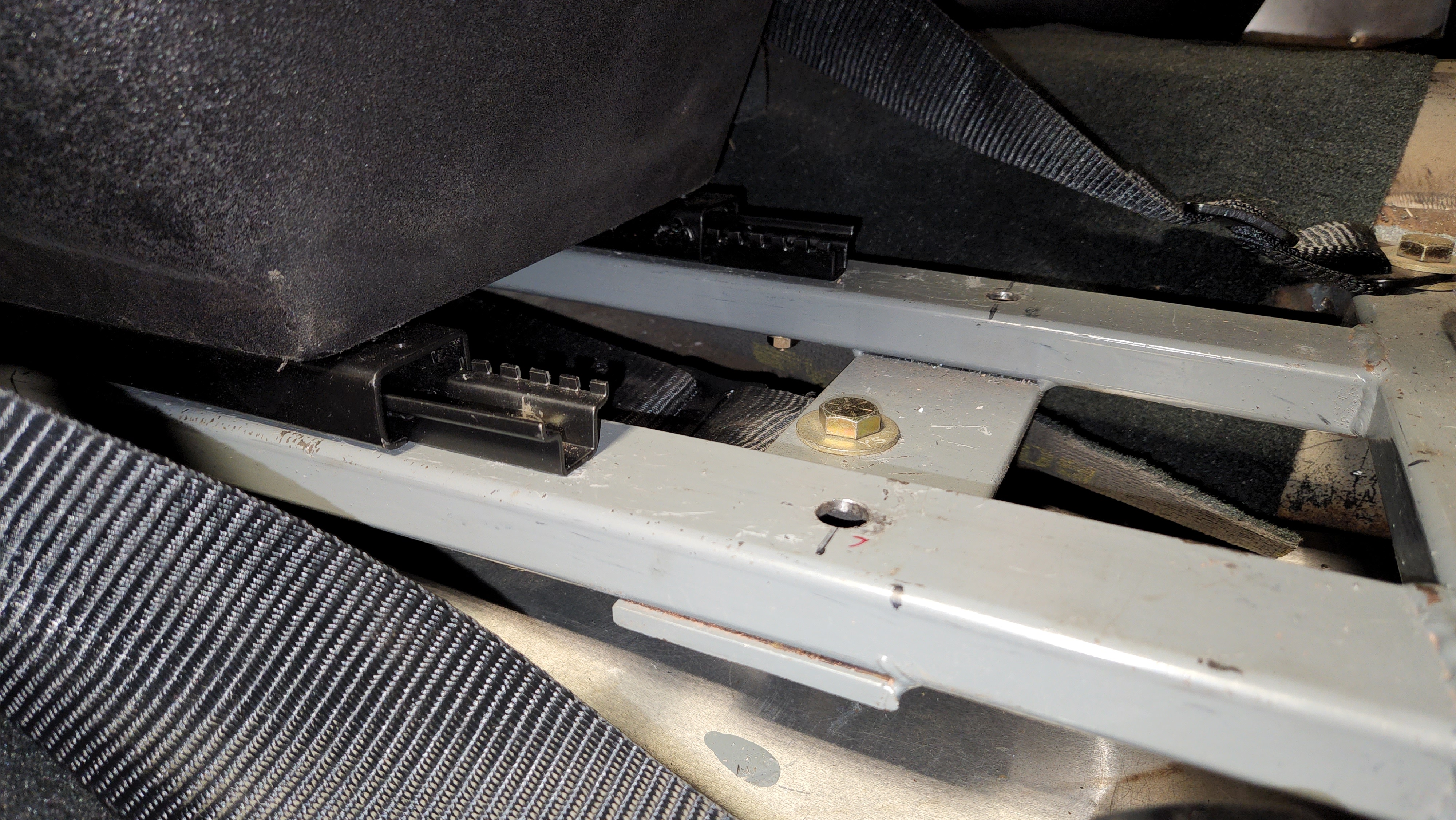 Another sub-project completed -- driver's seat conversion to seat tracks is completed. There might need to be a minor seat belt adjustment, but I did get fully strapped in for the first time! I'm feeling a lot better about where I'm at with this car than I was at the beginning of the weekend.