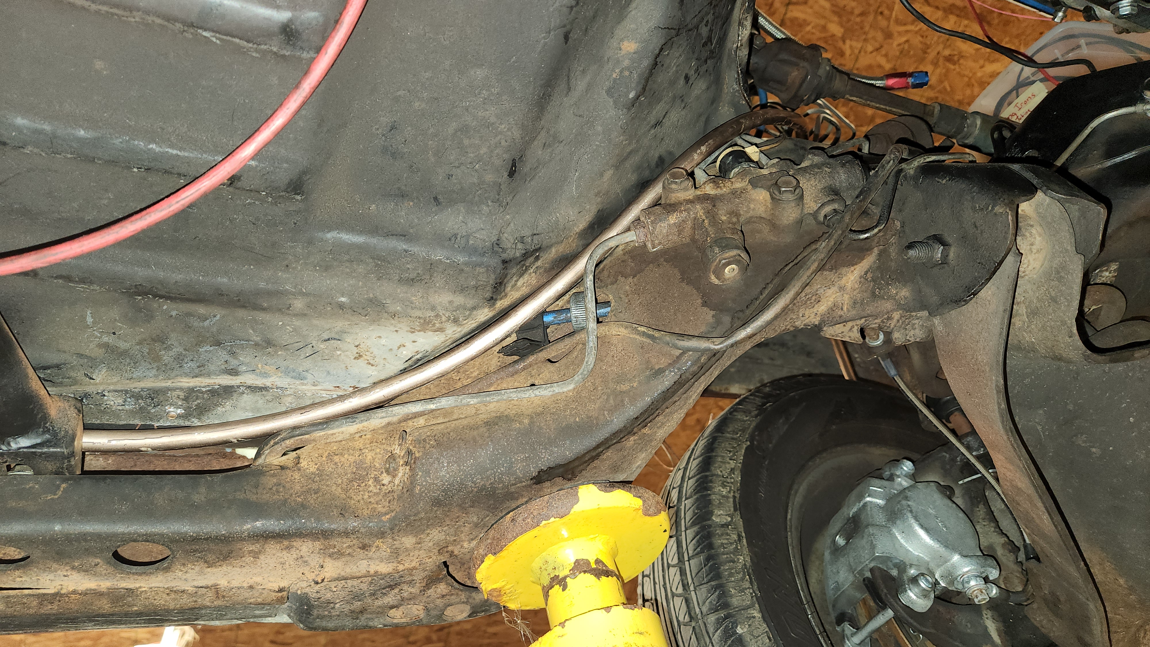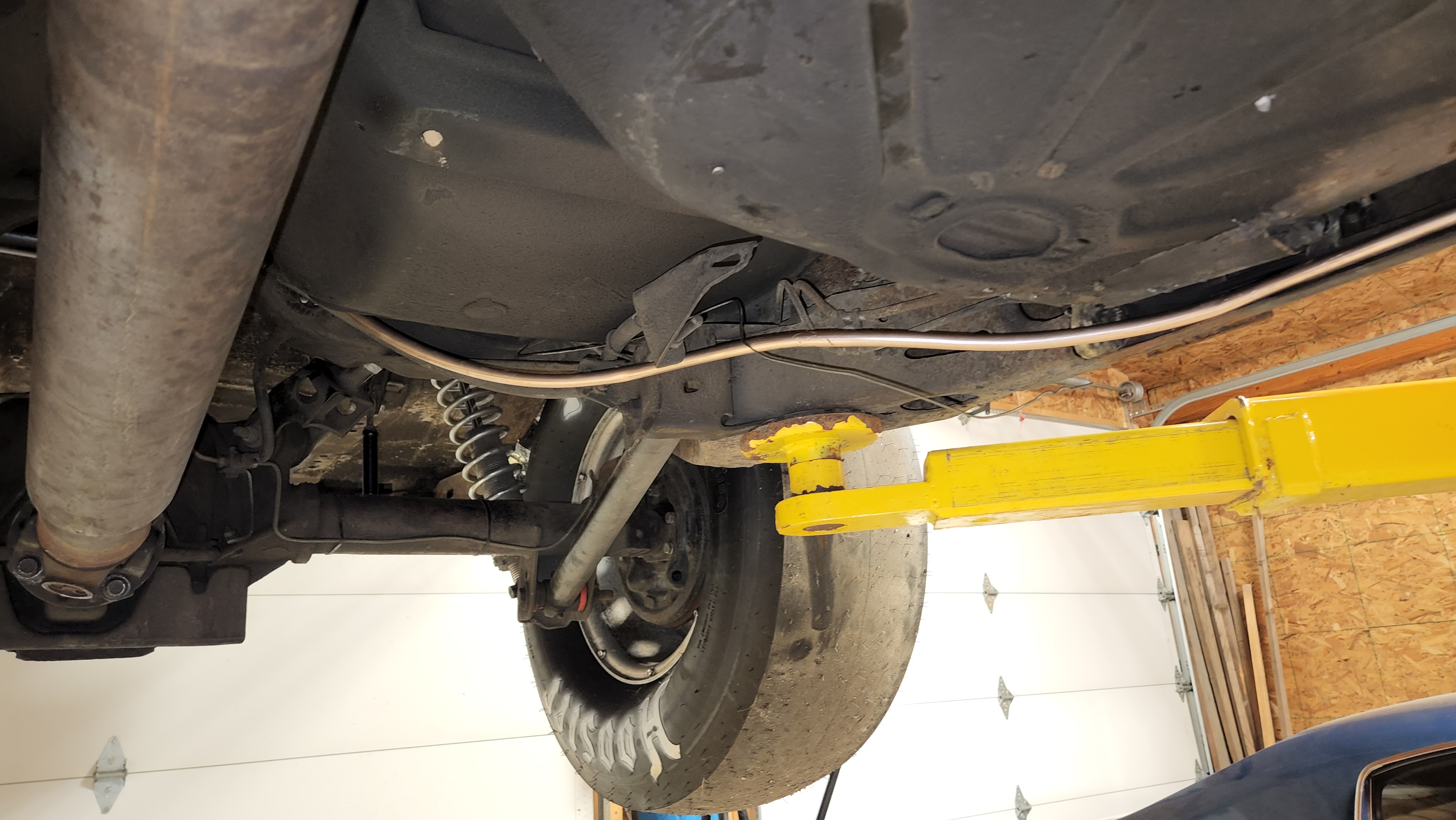 Major hurdle accomplished tonight -- the main fuel line from the back of the car up to the engine bay is (roughed) in! I love Nicopp -- its so easy to bend, even in 1/2", and I was determined to use as much of it as I could. This is ~$3/ft versus ~$9/ft for PTFE stainless braided. I'm making sure everything will be E85 compatible. I started from the rear suspension and worked forward, just sort of bending it as I went. I'm not sure where I'm going to terminate these in the engine bay -- on the wheelwell or down on the frame. From there, I'll have to use braided stainless over to/from the engine. The return line I'm going to do in 3/8".